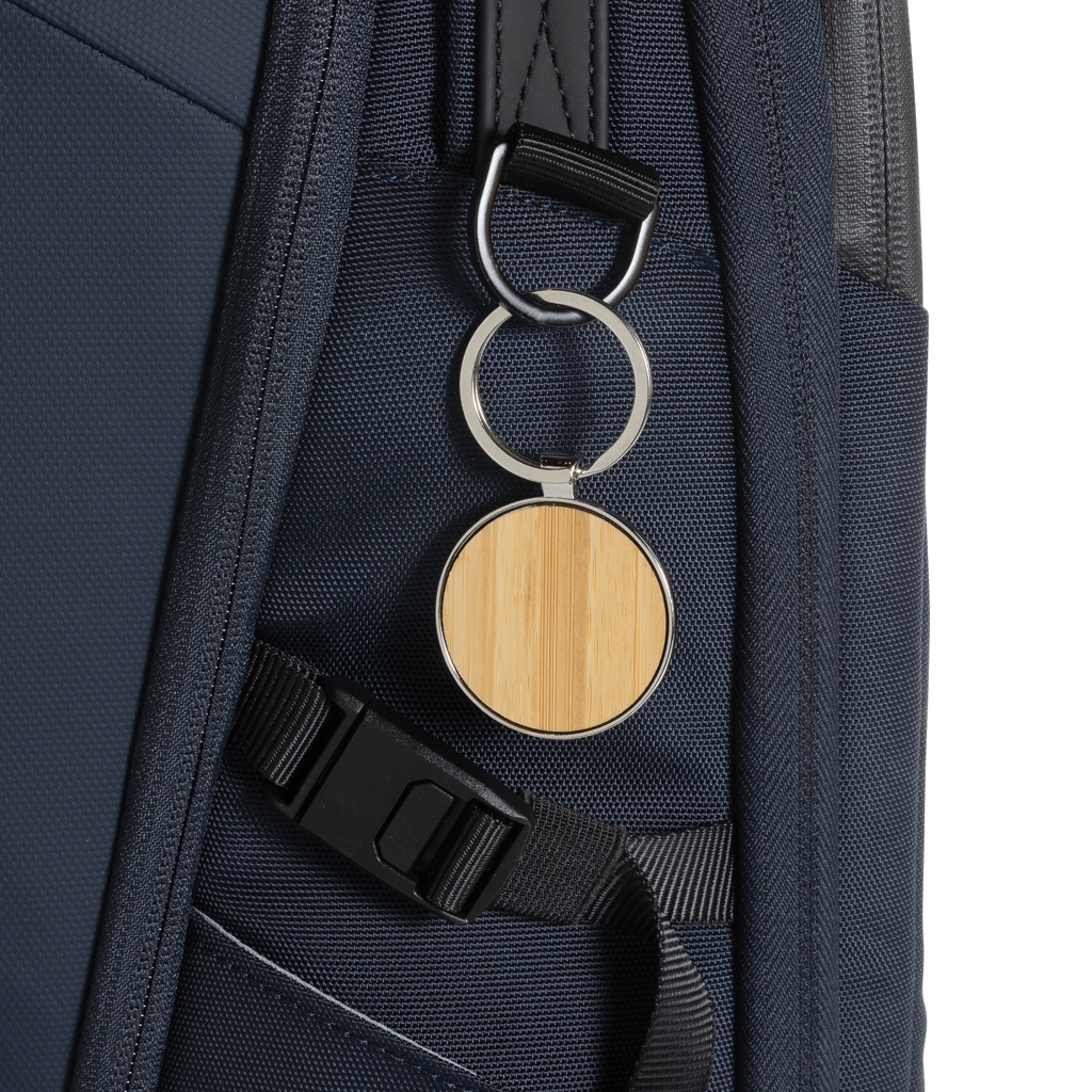 Круглый брелок RCS из переработанного цинкового сплава с бамбуком