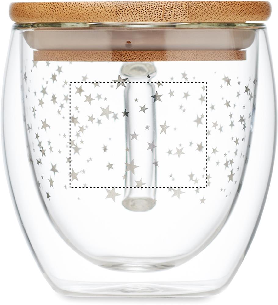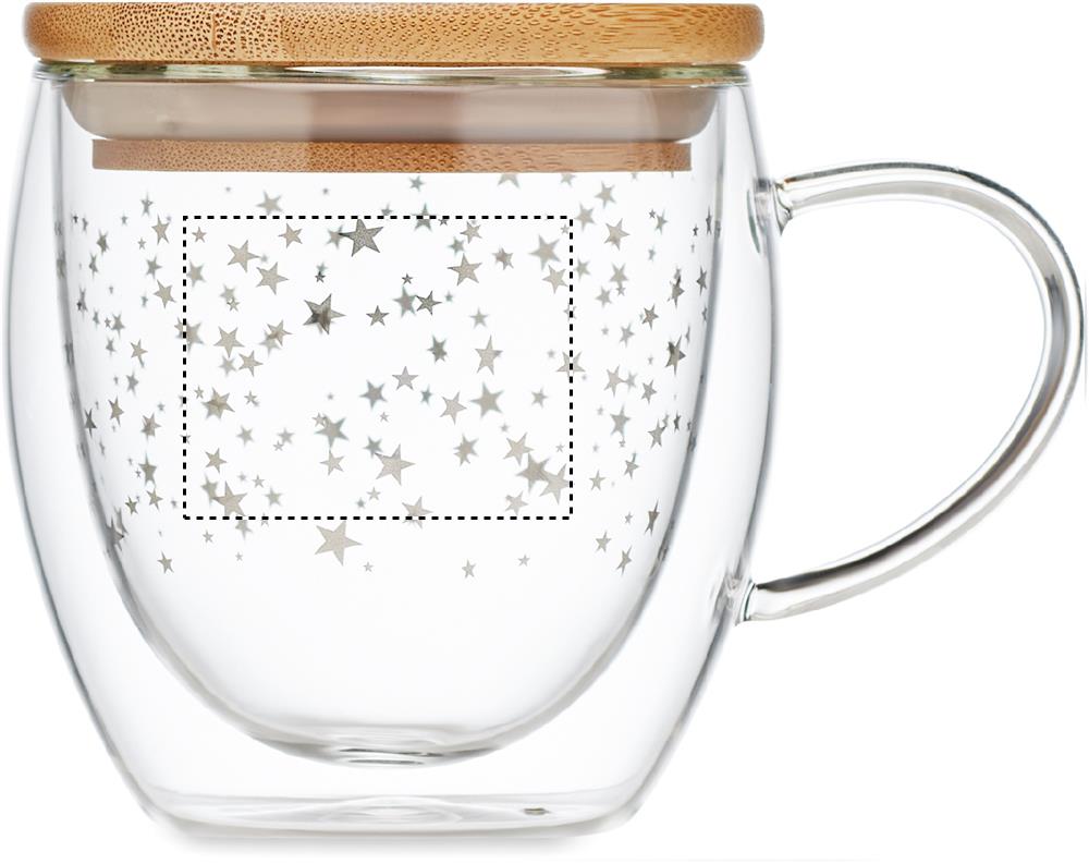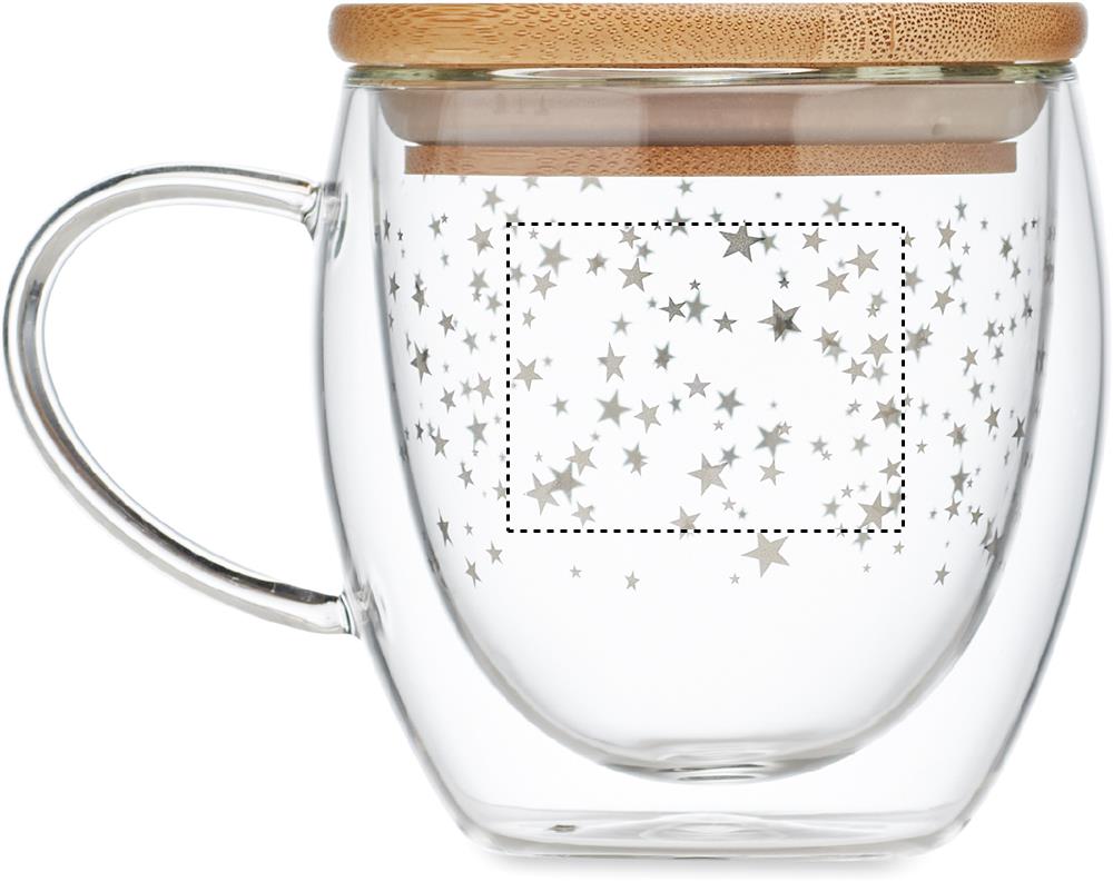 Кружка с двойными стенками из боросиликатного стекла с бамбуковой крышкой (рисунок звездочка). Объем: 220 мл.