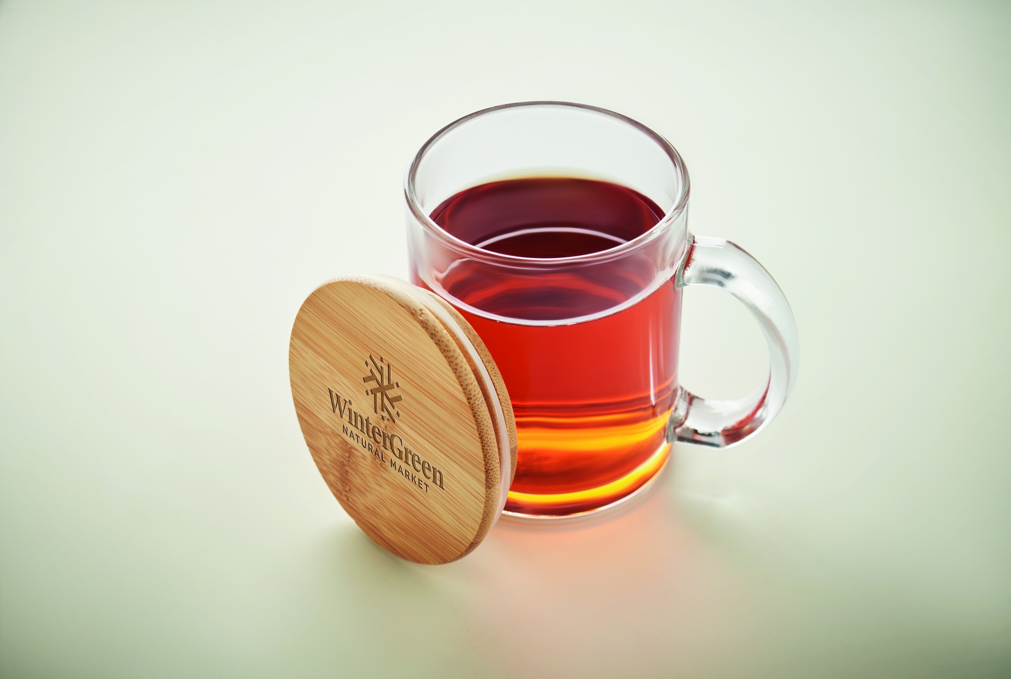 Кружка из переработанного стекла с бамбуковой крышкой. Емкость: 300 мл.