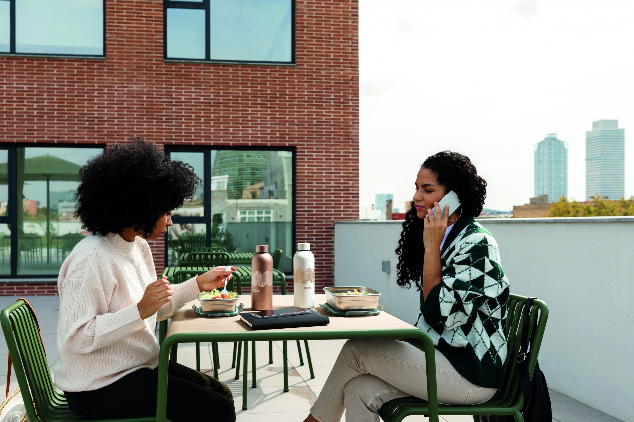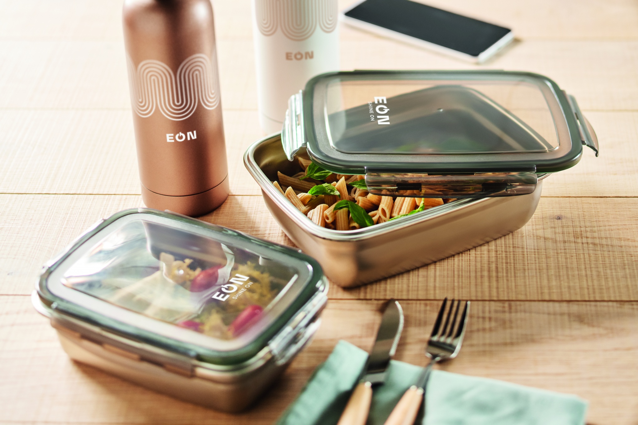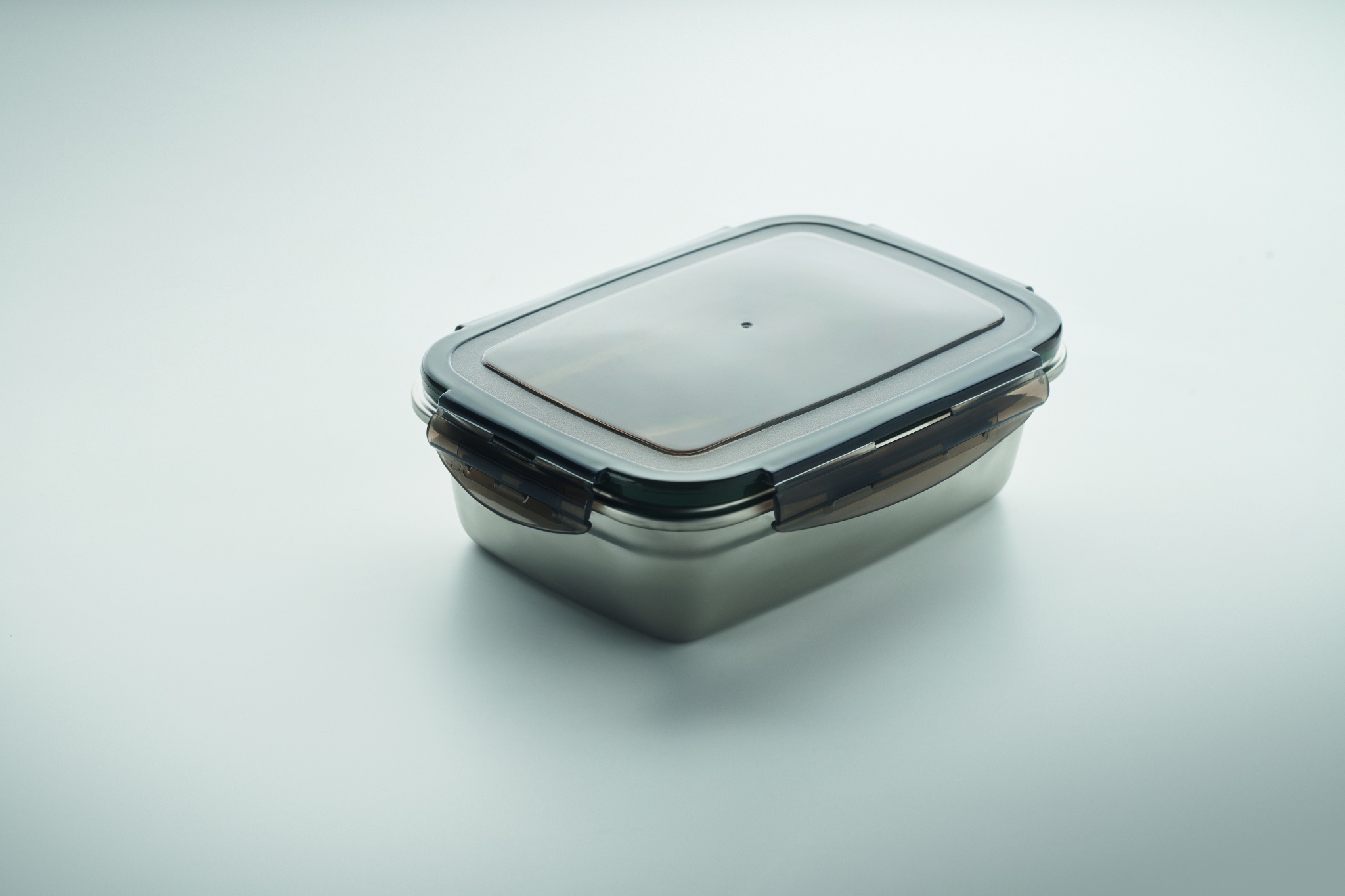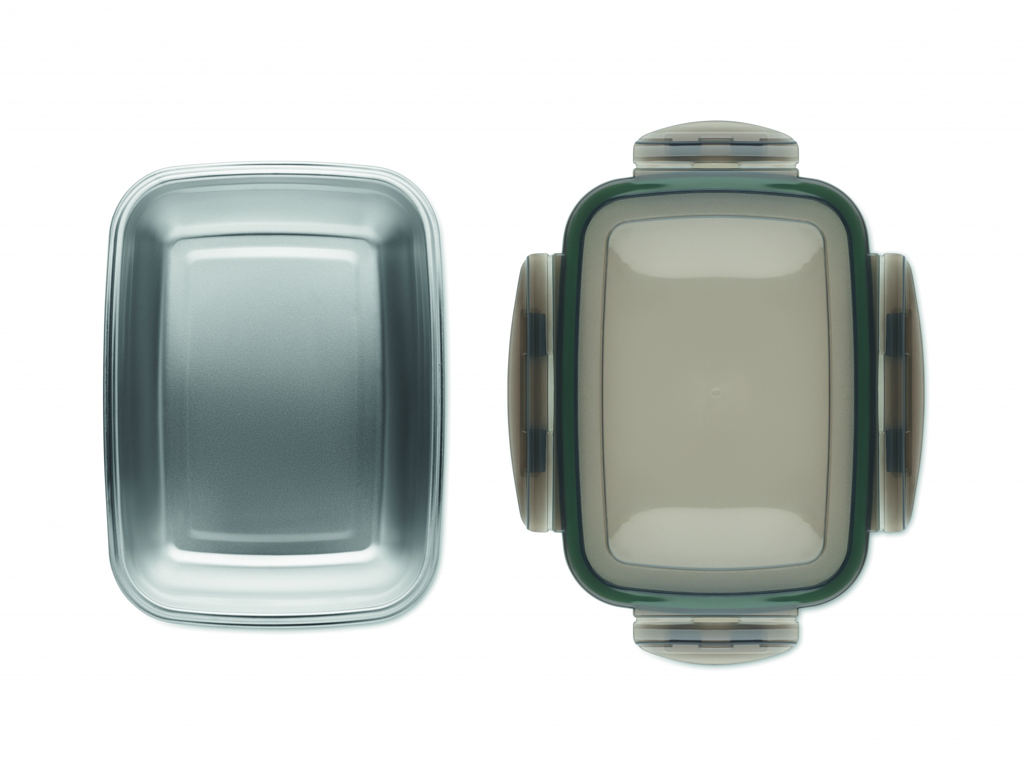 Ланчбокс из переработанной нержавеющей стали с крышкой из переработанного полипропилена и 4-сторонней застежкой. Вместимость: 850 мл.