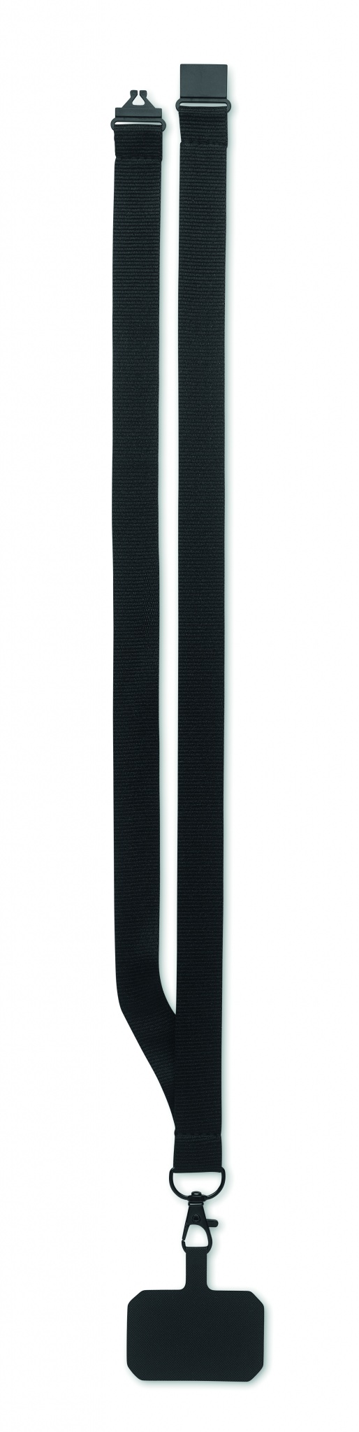 Ланьярд из полиэстера с держателем для телефона и безопасной застежкой. Ширина 2 см.