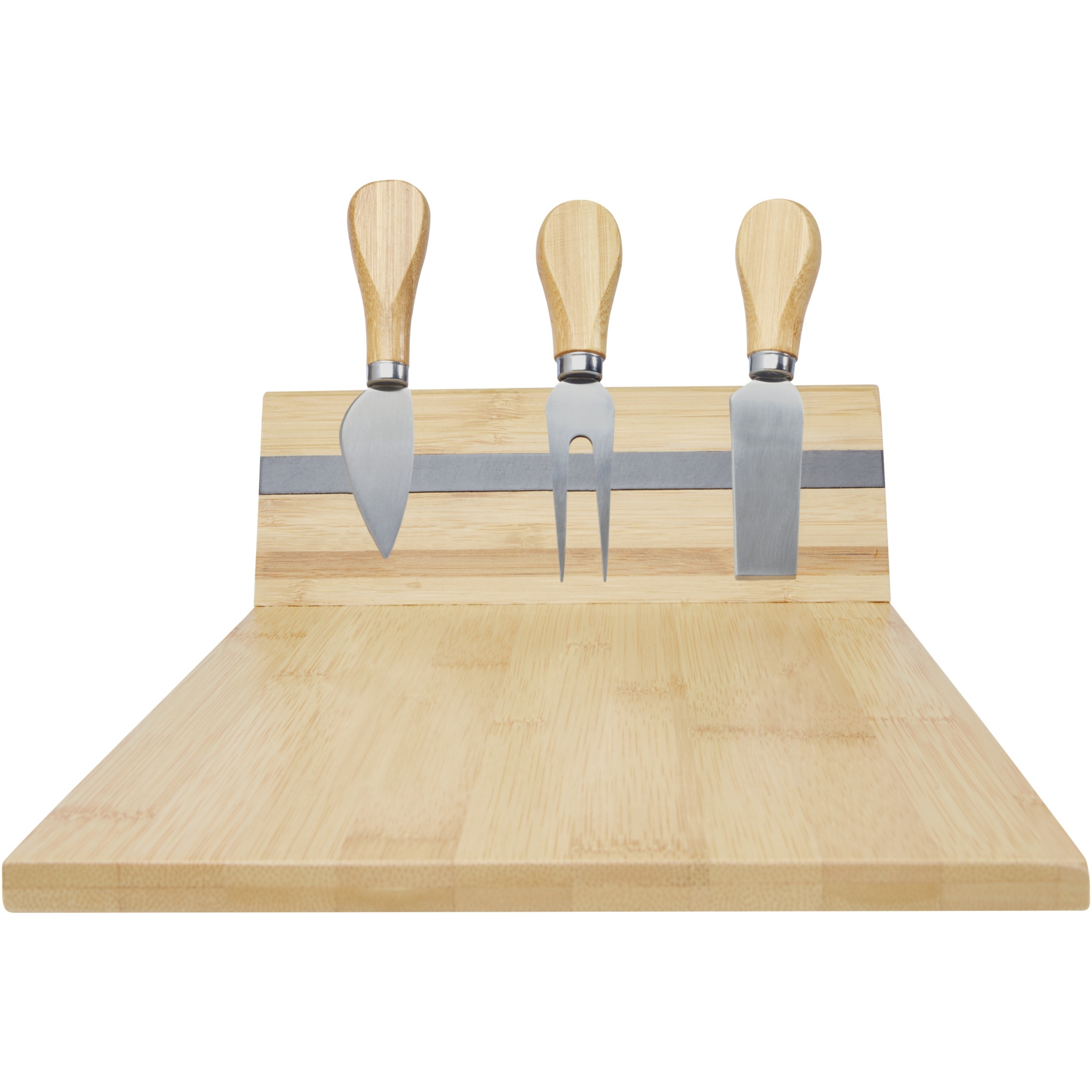 Набор для сыра из бамбука с доской для сыра. В комплект входит доска для сыра (30 x 20.2 x 7,6 см), 2 ножа для сыра (12,5 x 2,5 см и 12,5 x 2,7 см) и вилка для сыра (13,5 x 2,4 см). Боковая сторона доски для сыра оборудована магнитной лентой, к которой можно прикрепить инструменты для сыра, чтобы обеспечить стильную подачу. Используемый бамбук поставляется и производится в соответствии со стандартами устойчивого развития.