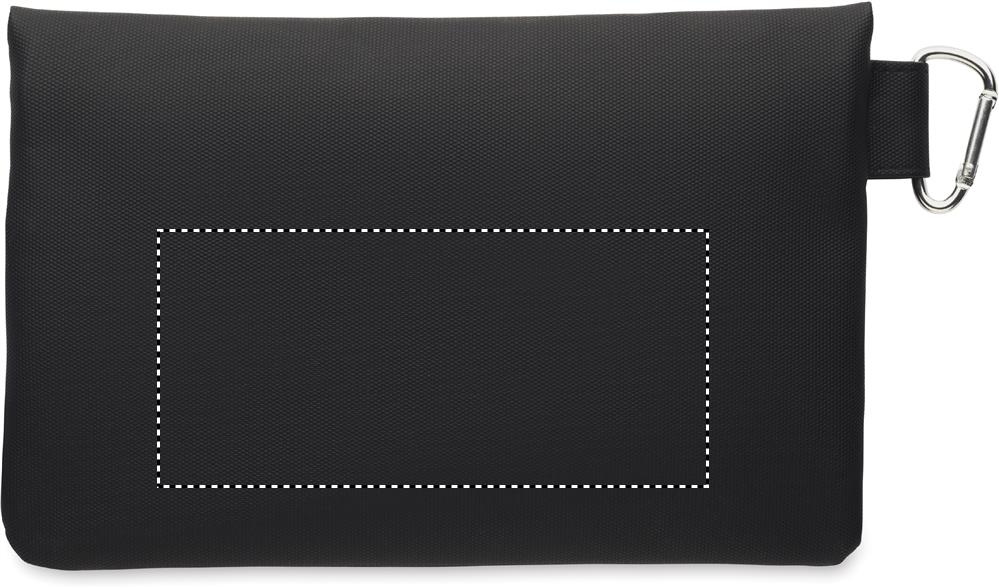 Portable organizer / pouch with PU coated 600D RPET polyester and zippered closure.