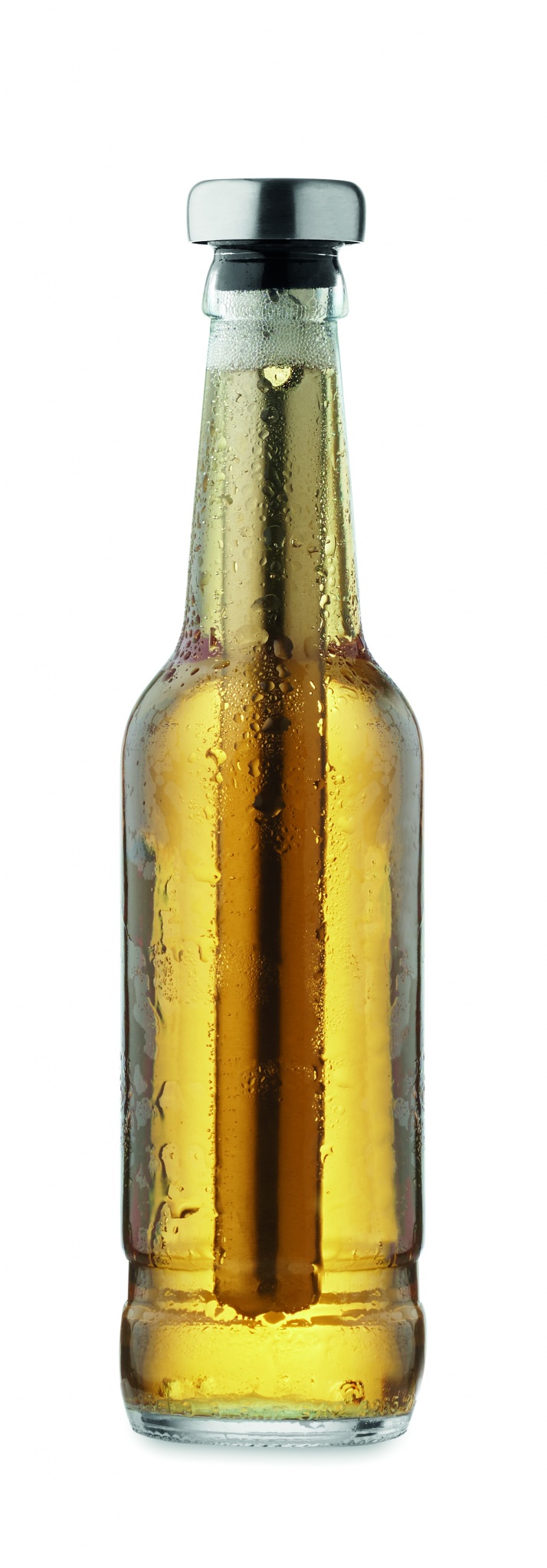 Открывалка для бутылок и охладитель для напитков в виде стержня из нержавеющей стали.