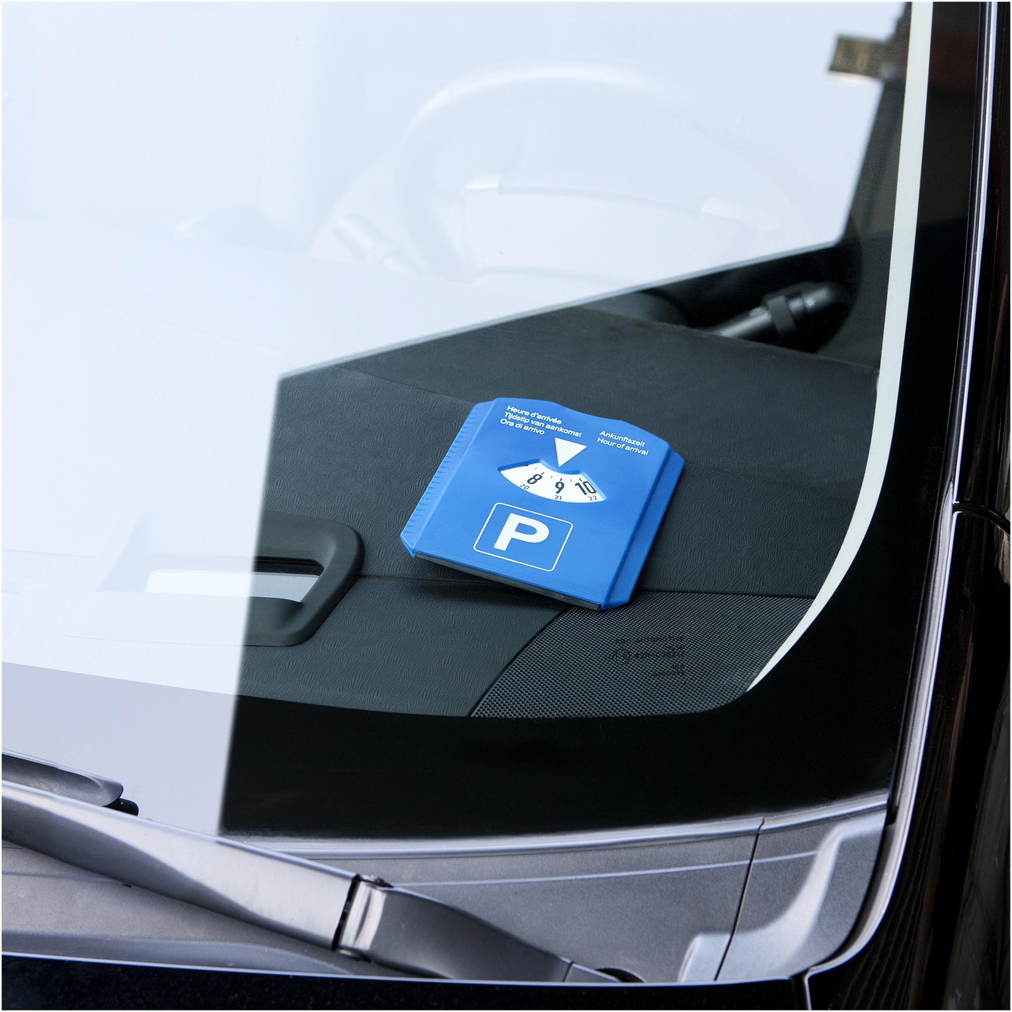 Парковочный диск со скребком для льда, резиновым стеклоочистителем, держателем для монет и измерителем глубины протектора. Большая белая поверхность на оборотной стороне для нанесения логотипа. Текст «Время приезда» на голландском, английском, французском, немецком и итальянском языках. Местные правила могут отличаться.