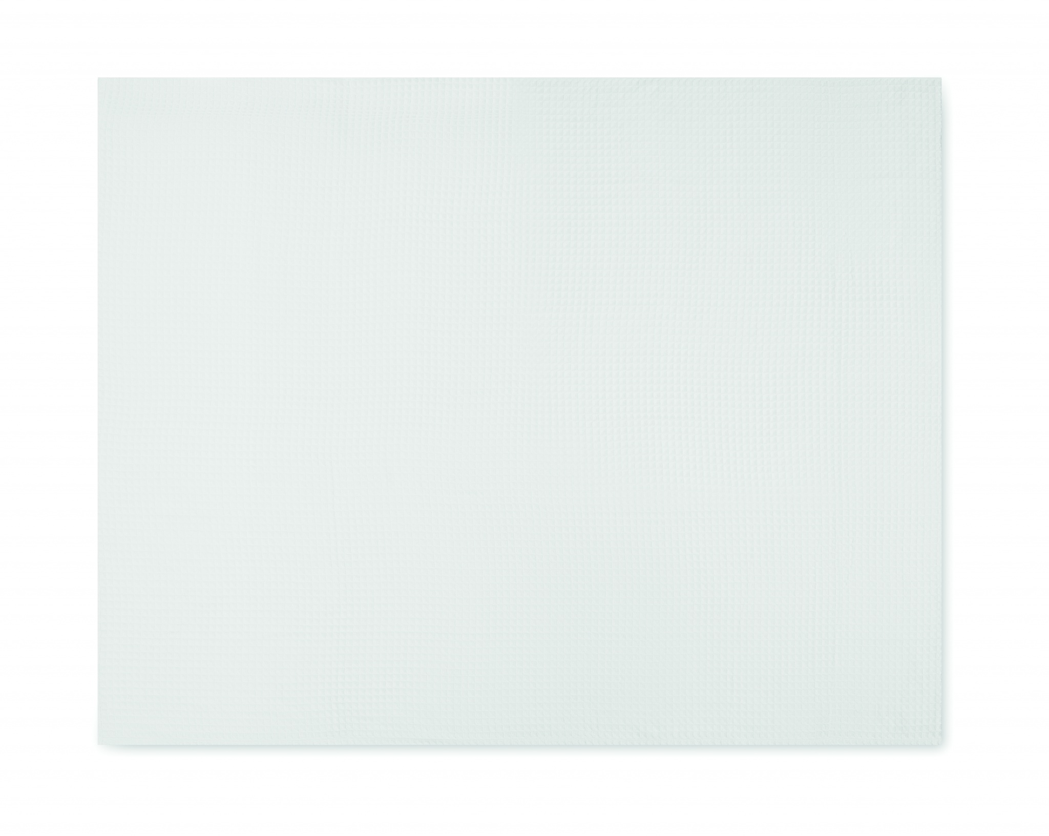 Легкое вафельное одеяло из хлопка плотностью 300 гр/м². Поставляется в белой коробке с крышкой.