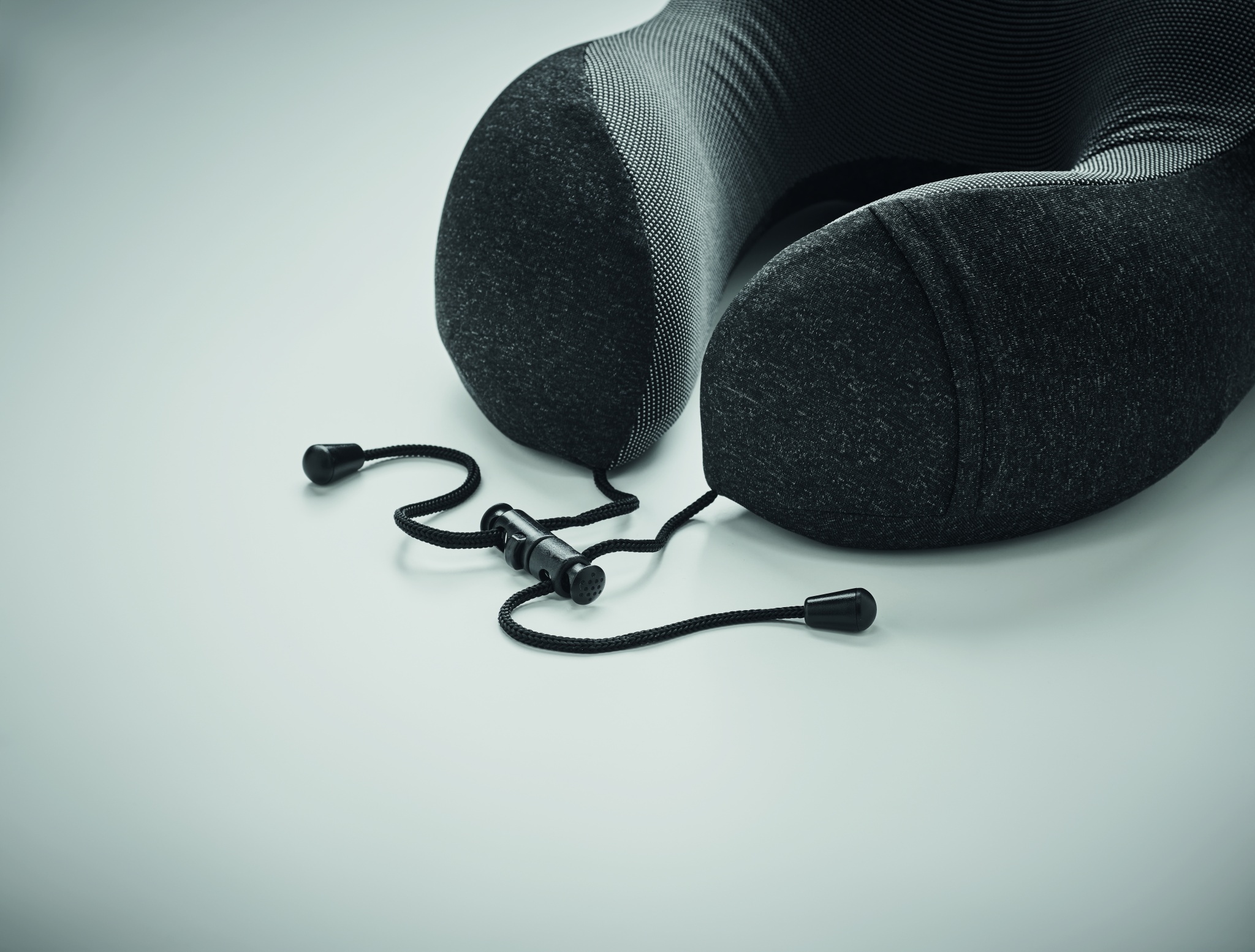 Подушка для путешествий из катионной ткани. В комплекте с чехлом из полиэстера RPET на шнурке. Удобна в использовании в автомобиле, поезде или самолете.