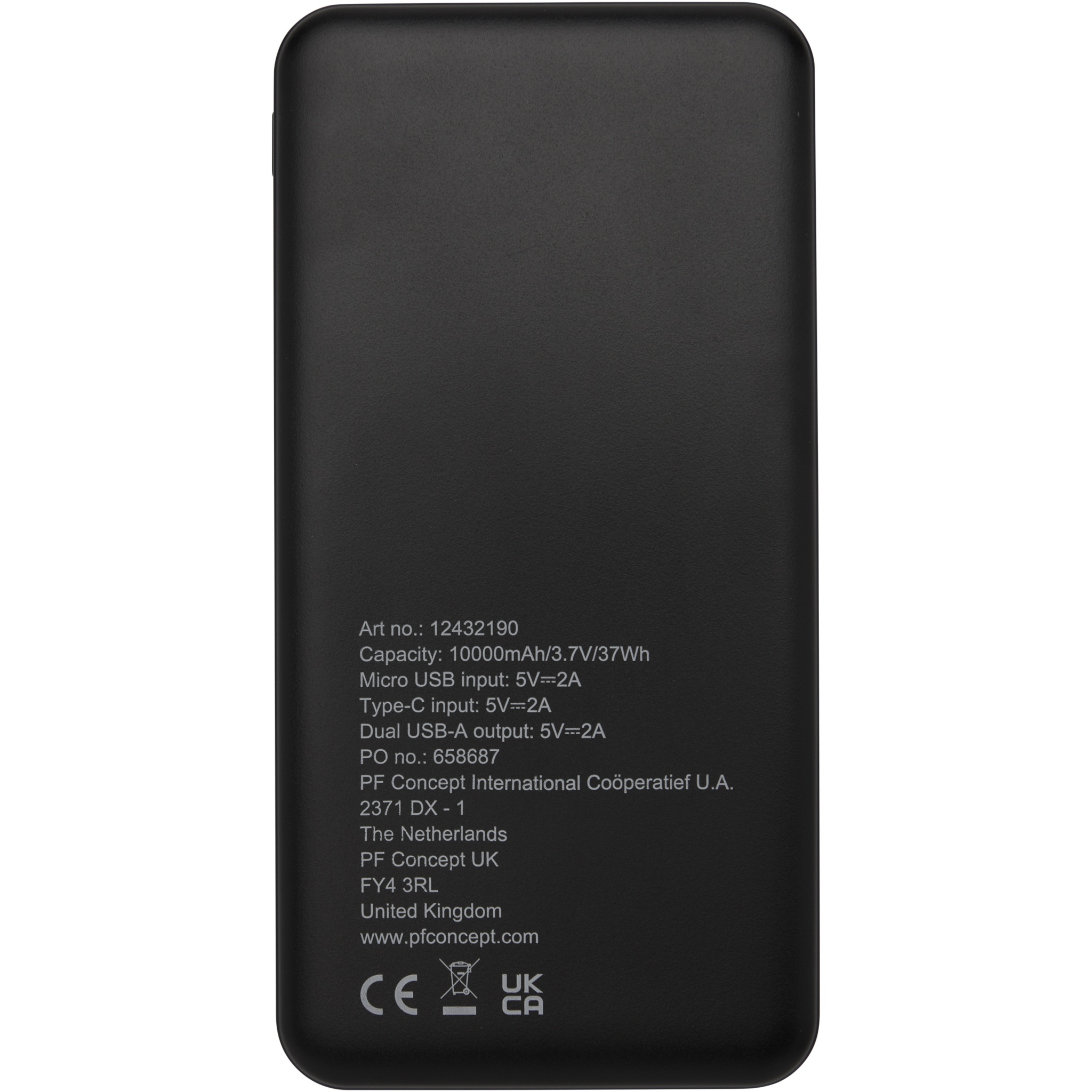 Портативное зарядное устройство Loop из переработанной пластмассы емкостью 10 000 мАч , Сплошной черный