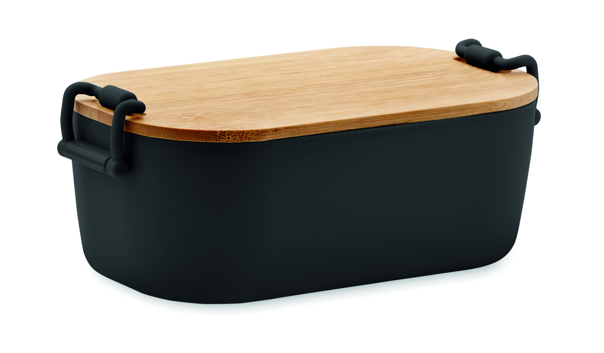 PP lunch box with 2 side clasp closures and bamboo lid. Capacity 700 ml.