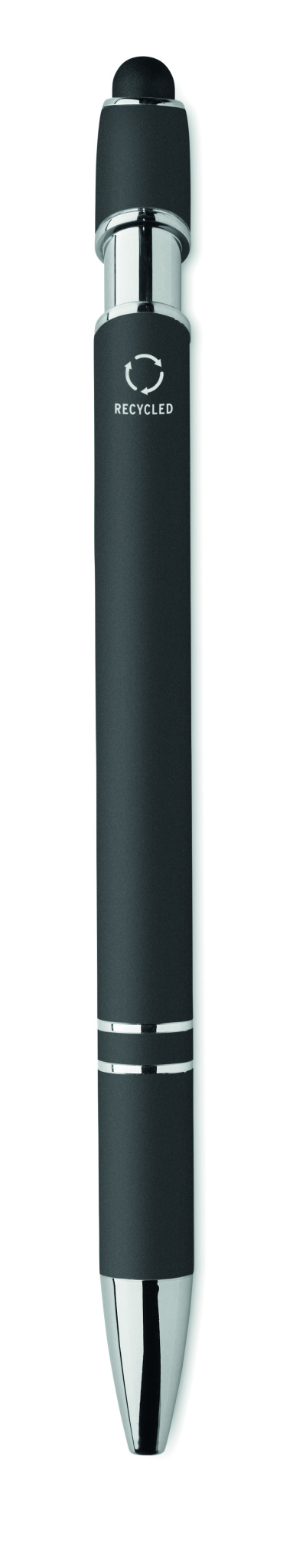 Recycled aluminium stylus push ball pen. Blue ink.