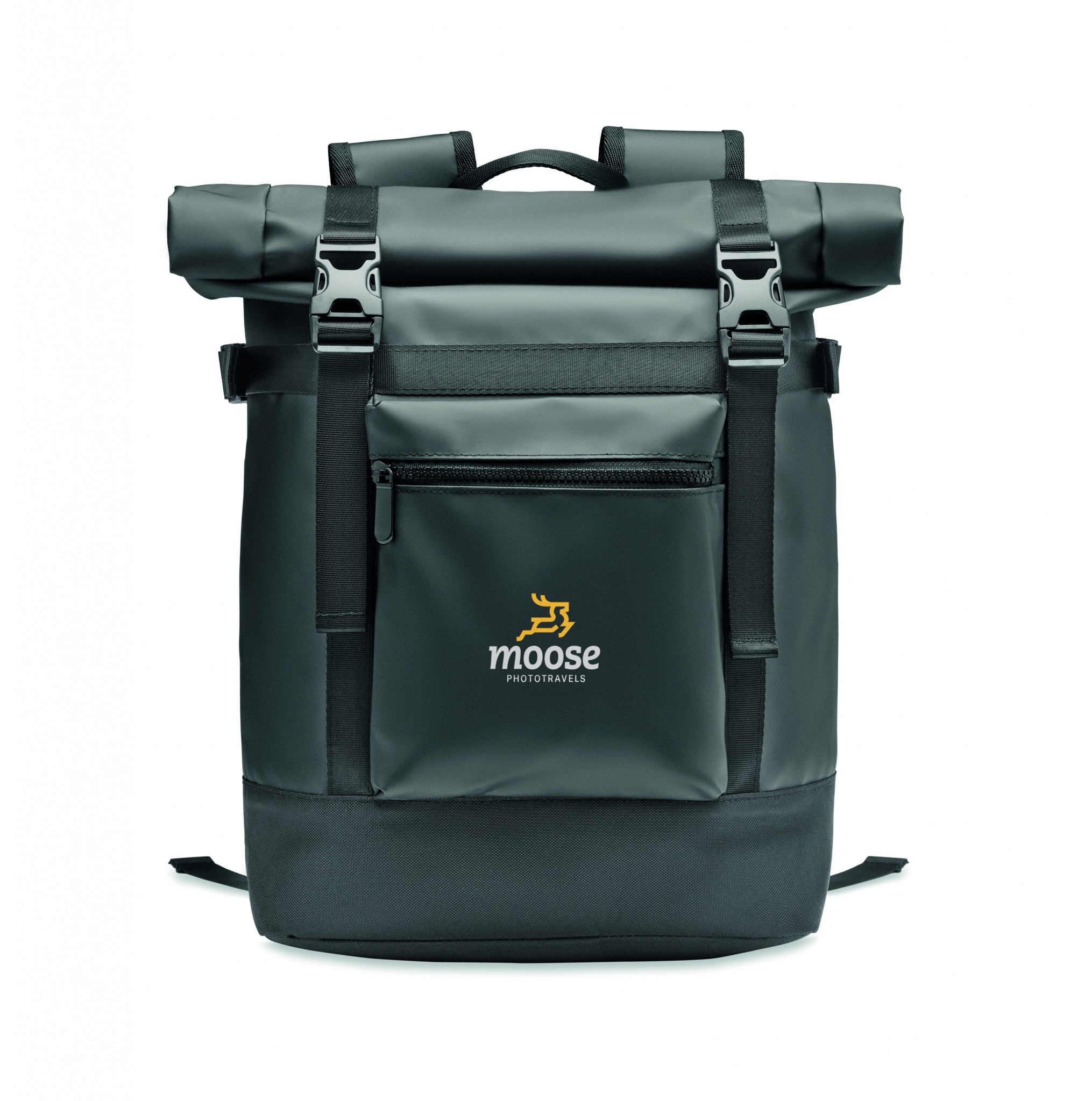 Рюкзак с застежкой Rolltop из брезента 50C с мягкой спинкой, основанием и усиленными плечевыми ремнями. Передние карманы на молнии.