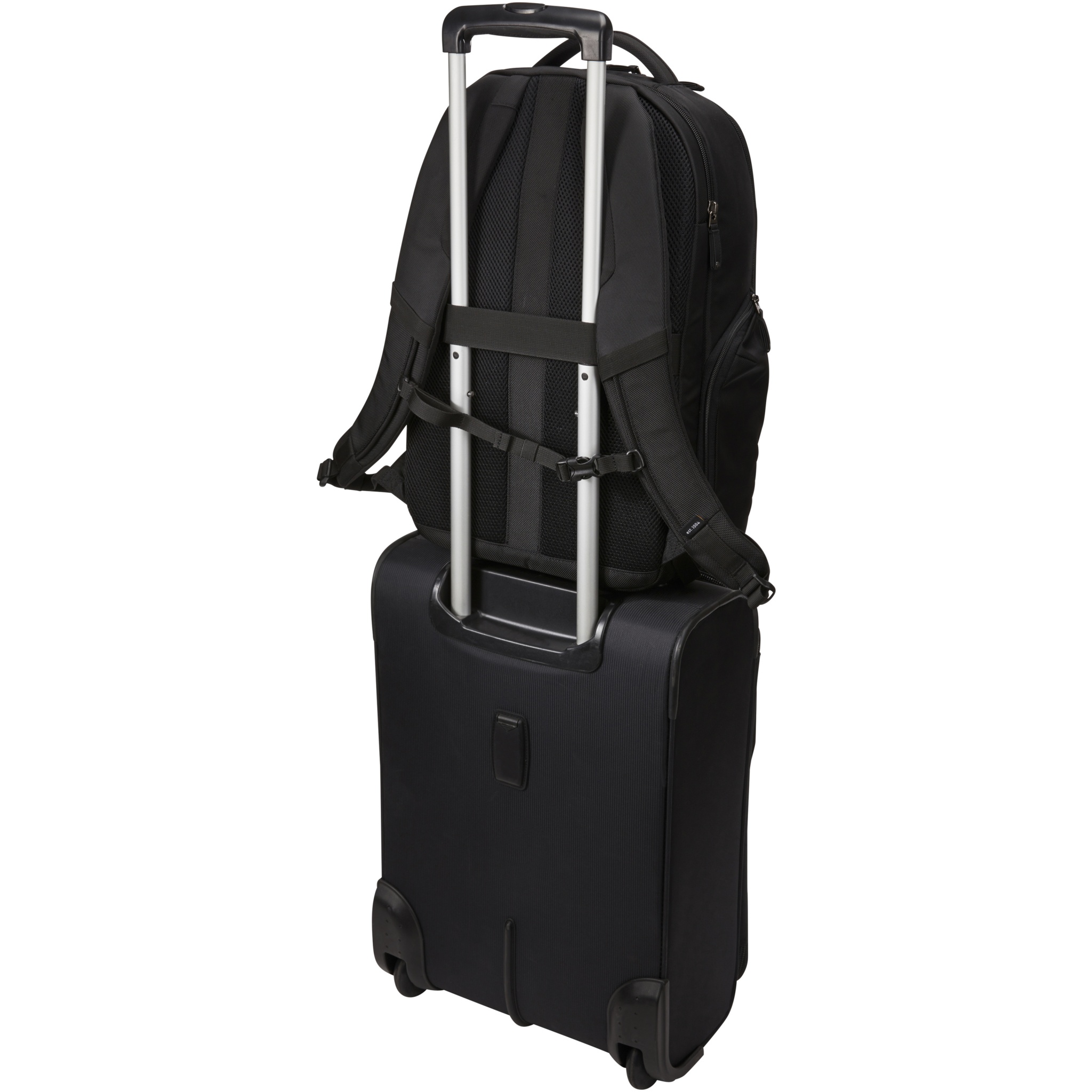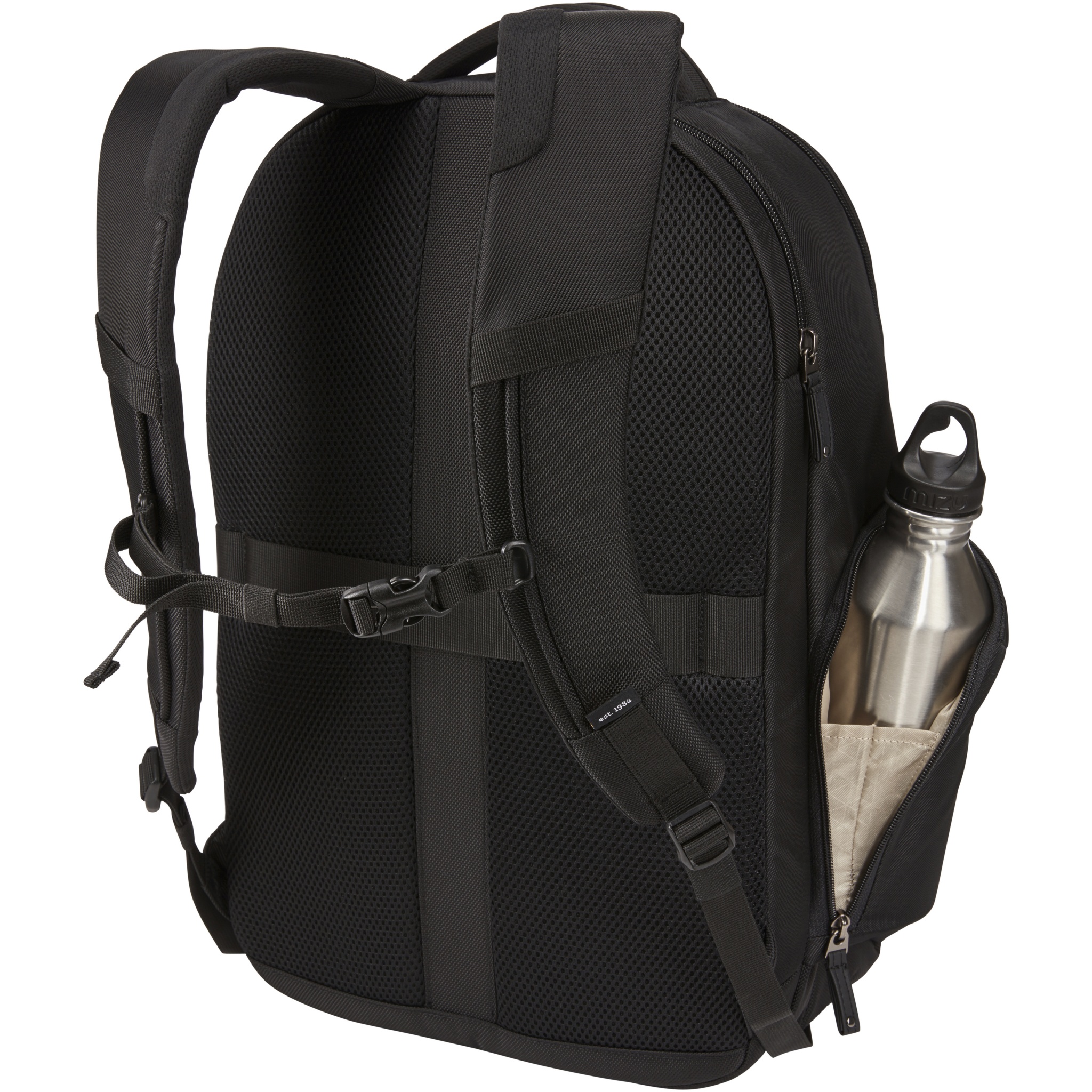 Имеет большое основное отделение на молнии с мягким чехлом для ноутбука 17,3" и планшета 10,1" и сетчатый карман на молнии для кабелей и аксессуаров. Поставляется с передней панелью-органайзером для хранения небольших электронных приборов, кабелей, аксессуаров, визитных карточек и ключей. Имеет расширяемые боковые карманы под бутылку с водой или блок питания, мягкие наплечные ремни, стеганую заднюю панель из сетки, мягкую ручку и рукав для фиксации на выдвижной ручке дорожной сумки. Гарантия от Case Logic: 25 лет.