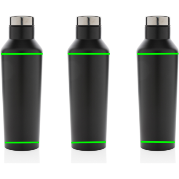 Красивая современная вакуумная бутылка из нержавеющей стали, которая делает заявление. Благодаря своему уникальному дизайну эта бутылка определенно станет вашим основным приобретением. Изготовлена из высококачественной нержавеющей стали с герметичной завинчивающейся крышкой. Она сохраняет все, что вы хотите, холодным до 15 часов или горячим до 5 часов. Не содержит BPA.