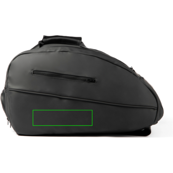 В этом рюкзаке есть большое основное отделение и два боковых отделения для ракеток. Одна короткая сторона имеет отдельное отделение для обуви. Небольшие скрытые карманы на молнии для ценных вещей. В основном отделении есть несколько внутренних карманов для мячей или других предметов. Эту сумку можно носить как рюкзак или как спортивную сумку. Плечевые ремни рюкзака имеют подкладку для удобства плеч и регулируются, чтобы обеспечить идеальную посадку.