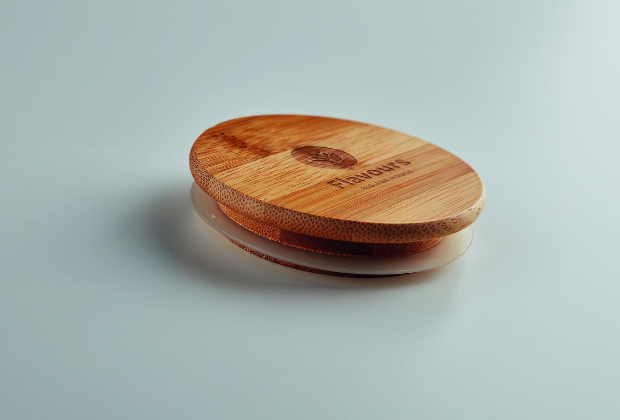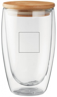 Стакан двустенчатый из закаленного боросиликатного стекла с бамбуковой крышкой и силиконовой прокладкой. Емкость 450 мл.