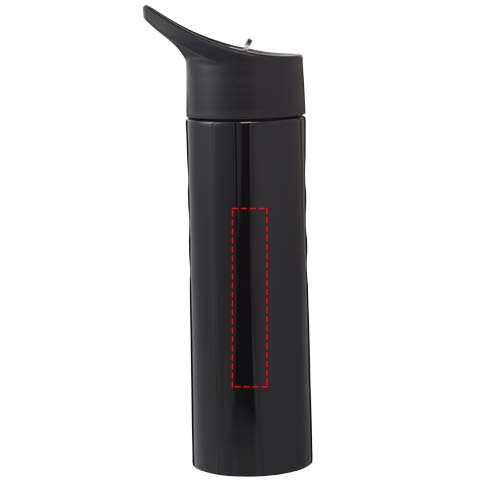 Одинарные стенки. Откручивающаяся крышка с защитой от протекания и отверстием для питья. Резиновый грипп для пальца сбоку- для удобства в использовании. Объем 750 мл.