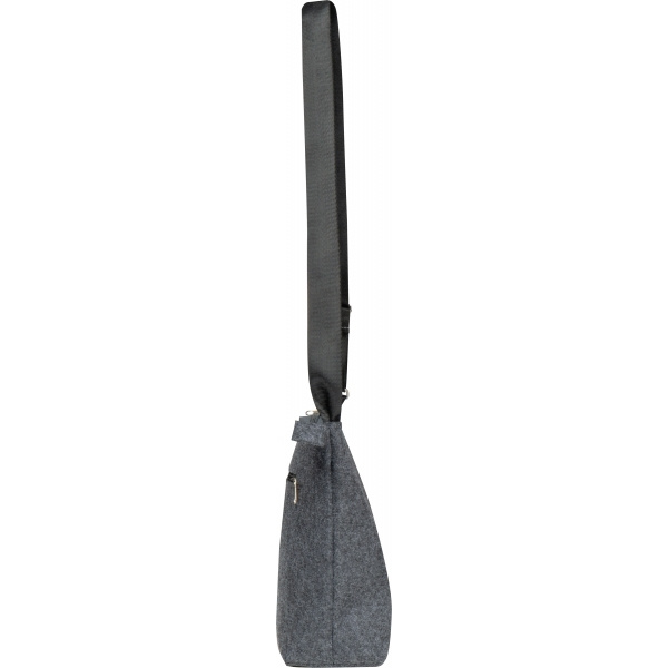 Сумка через плечо из переработанного войлока. Сумка имеет большое основное отделение с застежкой-молнией и нижней вставкой, передний карман на молнии и регулируемый плечевой ремень.