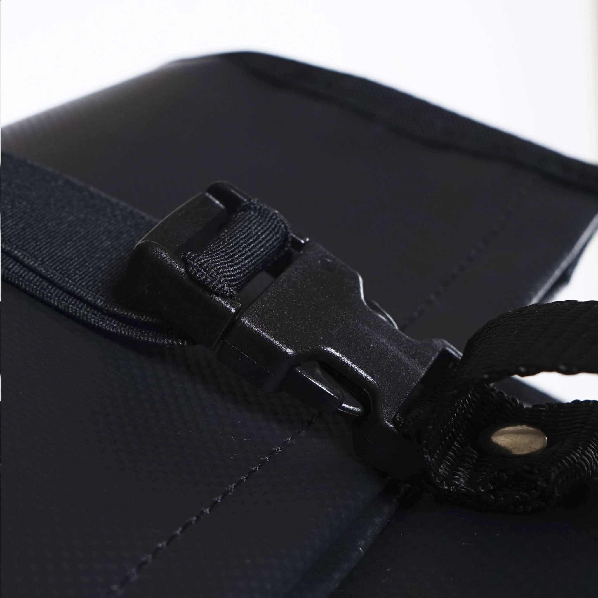 Сумка для велосипеда от бренда Fraenck, изготовленная из переработанной парусины. Прочный и водоотталкивающий материал изготавливается из переработанных остатков парусной промышленности. Застежка-ролл-топ может быть свернута и закреплена зажимами. Обе стороны сумки усилены косой бейкой. Внутри усиленное дно и задняя часть. Легко крепится к багажнику для велосипеда. Сделано в Голландии.