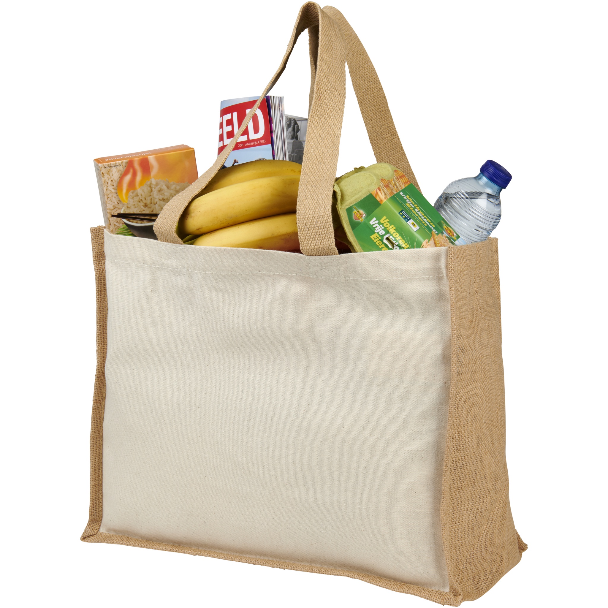 Сумка-тоут из холста и джута Varai объёмом 23 литра - идеальная сумка для продуктовых покупок, прогулок на выходных или любых других ежедневных поручений. Сочетание холста плотностью 320 г/м² и джута плотностью 330 г/м² придает сумке прочность и устойчивость к весу до 12 кг. Сделано в Индии и сертифицировано OEKO-Tex.
