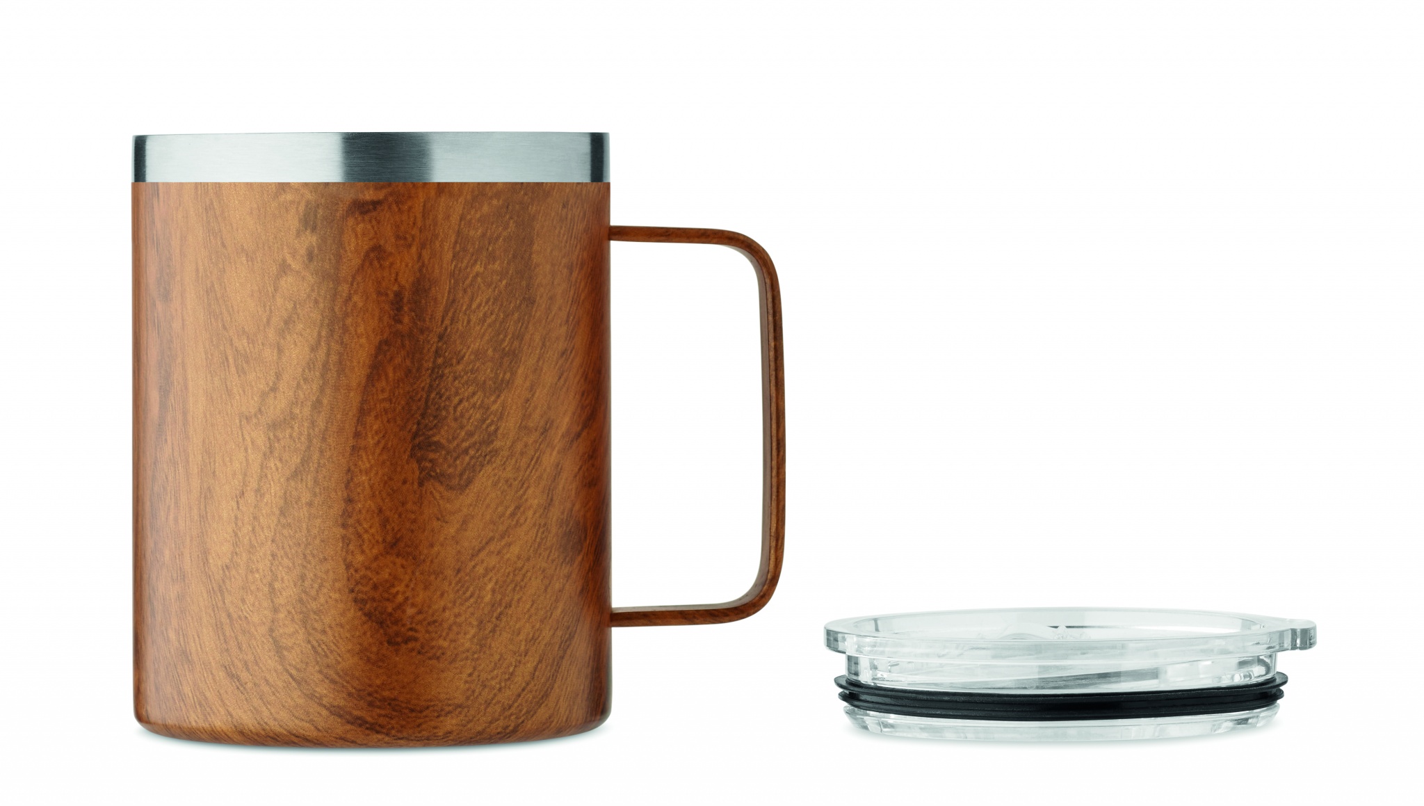 Термокружка с двойными стенками из переработанной нержавеющей стали (90% переработанной нержавеющей стали и 10% нержавеющей стали) с деревянным покрытием и крышкой с отверстием для питья. Объем 300 мл.