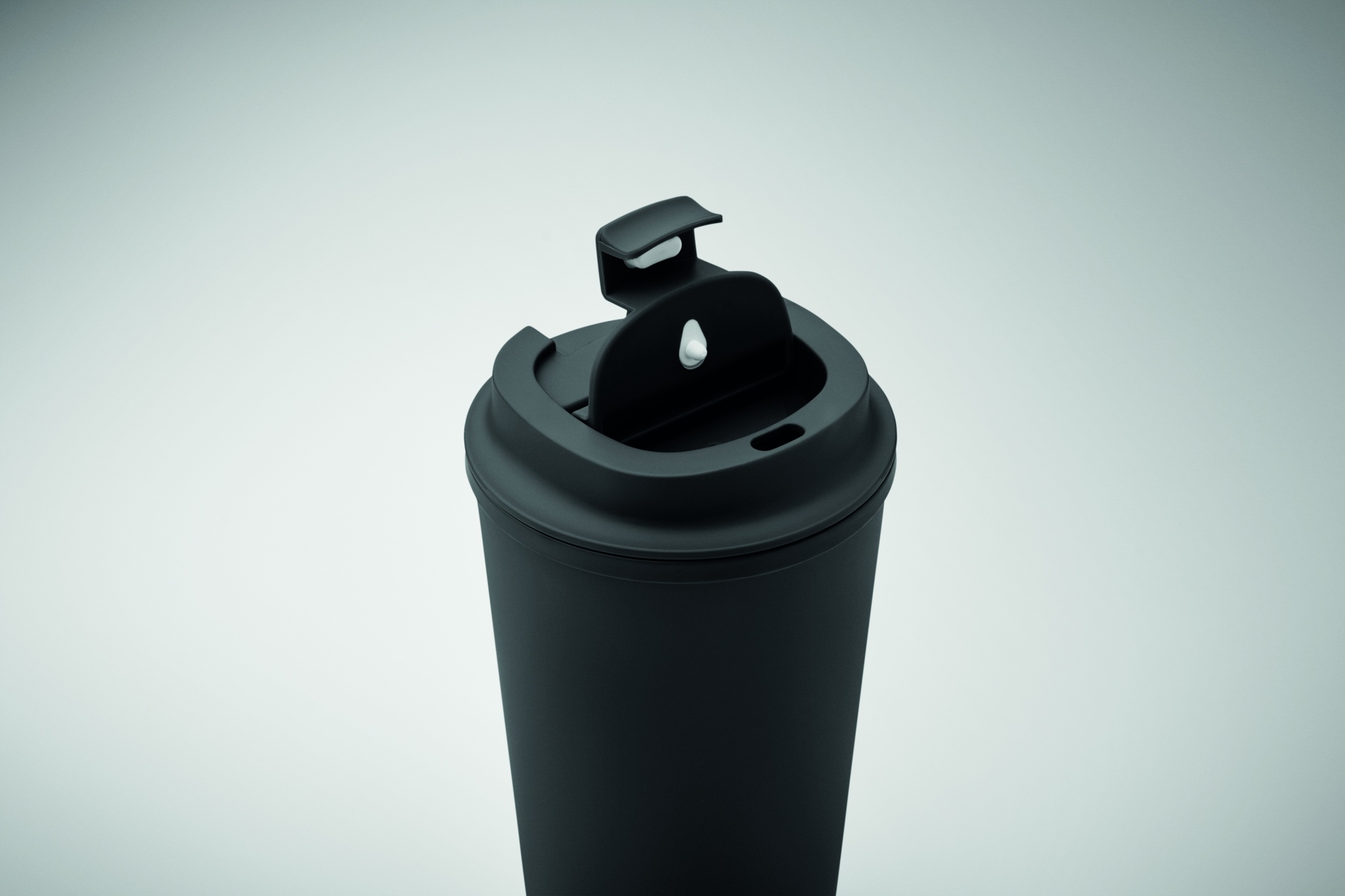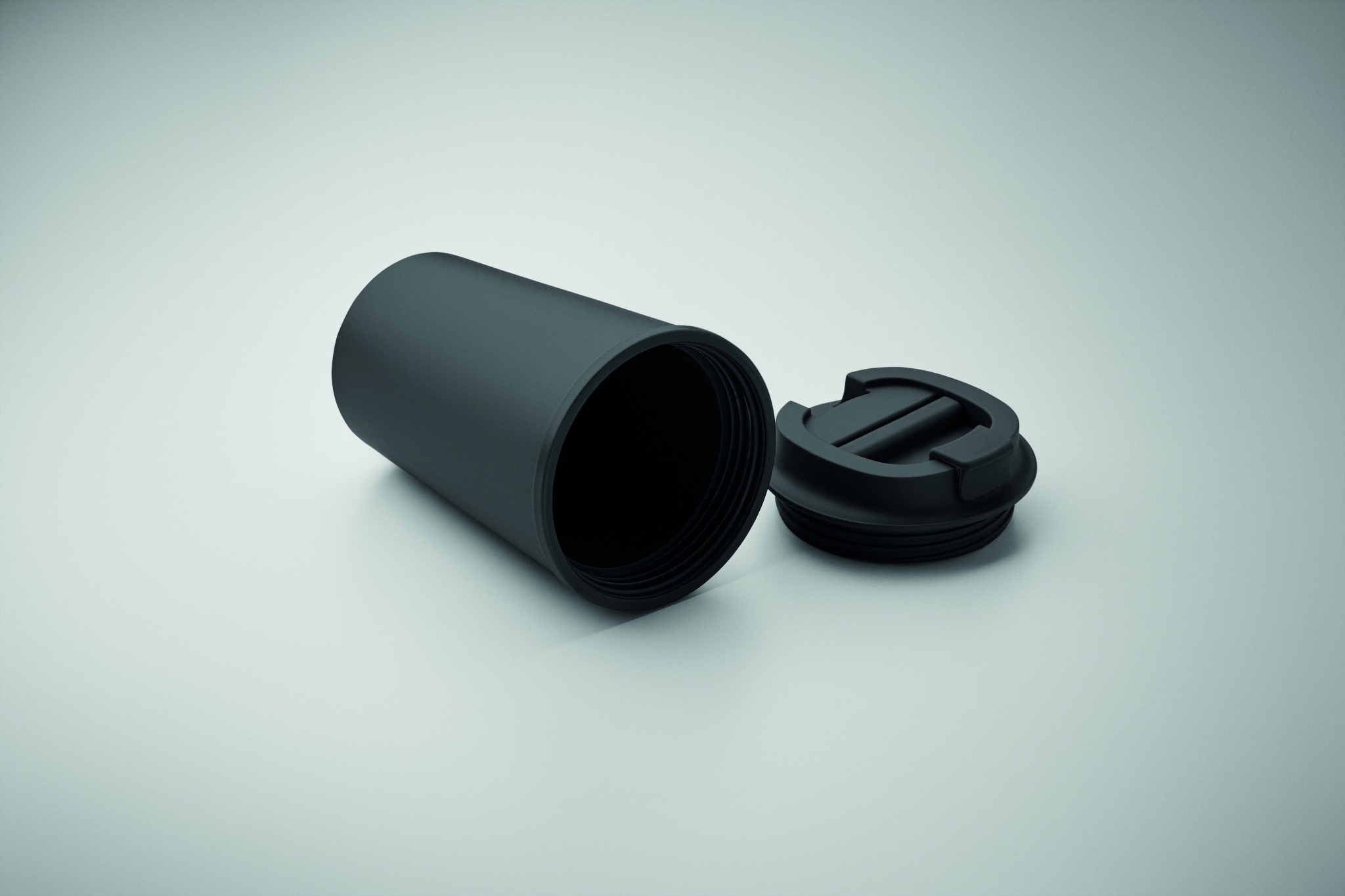 Термокружка с двойными стенками из 100% биоразлагаемого пластика на основе кукурузы с крышкой из переработанного полипропилена и термопластичной резины. Герметична. Объем: 350 мл.