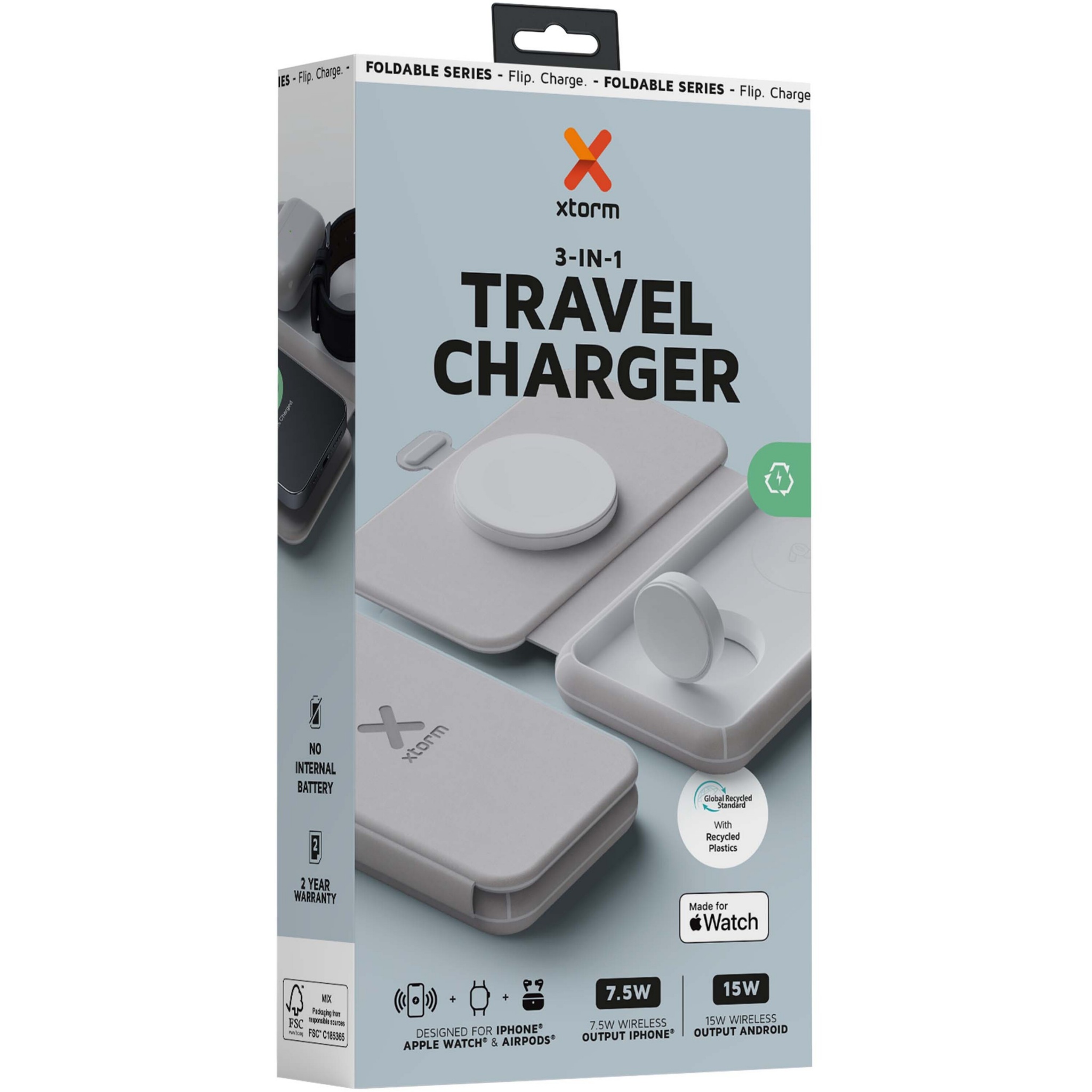 С помощью этого компактного, складного и элегантного беспроводного магнитного дорожного зарядного устройства вы можете одновременно заряжать свой iPhone, Apple Watch и AirPods! Идеально подходит для зарядки дома, в офисе или во время ночной поездки. В комплект входит 1 магнитное беспроводное зарядное устройство (15 Вт), 1 зарядное устройство для Apple Watch (3 Вт) и 1 беспроводная поверхность Qi (3 Вт). Входная мощность: Подача питания USB-C мощностью 30 Вт. В комплект поставки входит кабель питания USB-C длиной 1 метр и руководство пользователя.