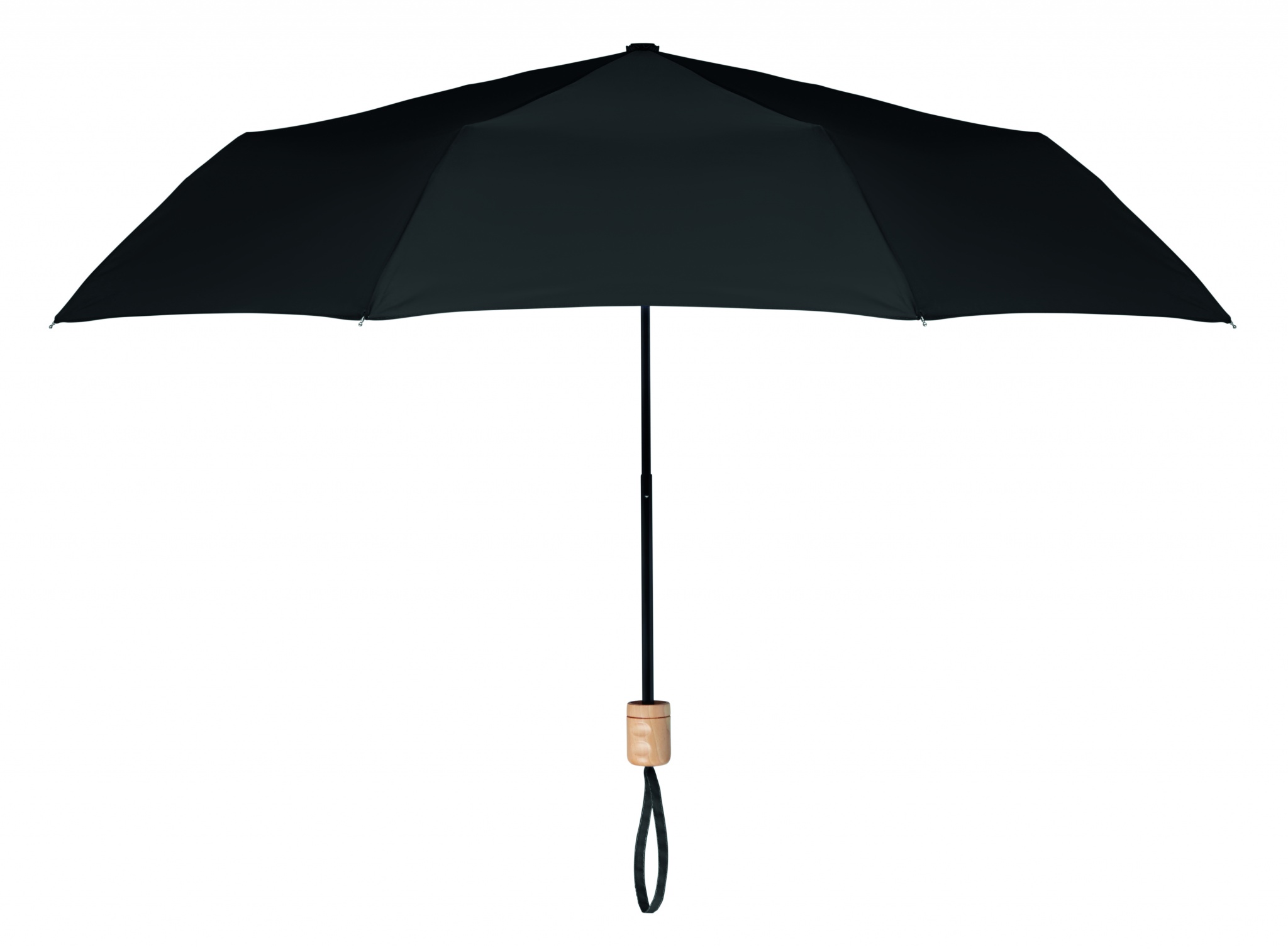 Зонт складной 21 дюйм. Купол из эпонжа 190T. Каркас и спицы черные . Ручка деревянная . Ручное открытие и закрытие. Чехол в комплекте.