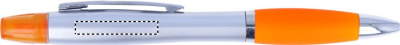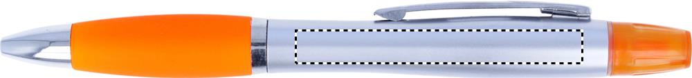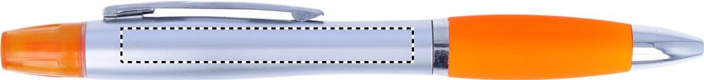 2-i-1 kulpenna i plast och highlighter i silver satin finish och krom beslag. Blått bläck.