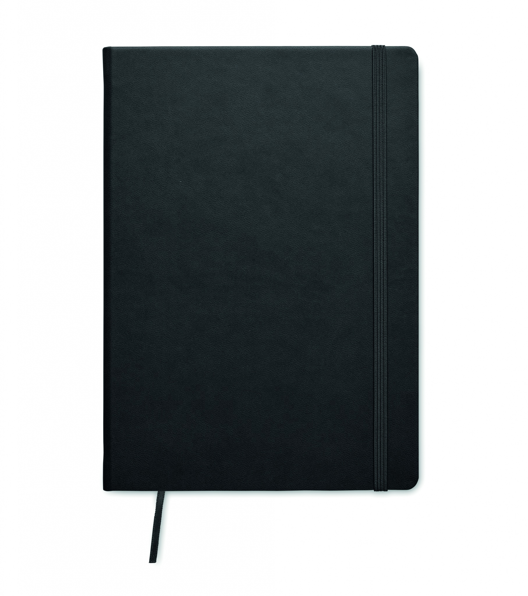 A5-anteckningsbok med hårda PU-pärmar. Inbunden med 200st linjerade sidor (100 ark) av återvunnet papper (80 gsm). Matchande elastiskt band för stängning och sidmarkeringsband. Tillverkad i EU.