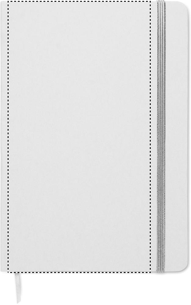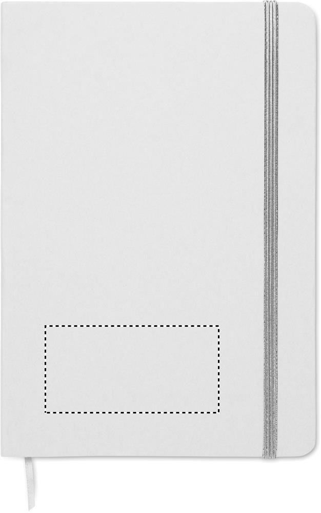A5 anteckningsbok med omslag av hård återvunnen kartong. Svart omslag. Inbunden med 160 linjerade sidor av återvunnet papper (80 ark). Elastiskt stängnings- och läsband matchar den underliggande färgen. Efter lasergraveringen kommer logon att träda fram i samma färg som bandet.