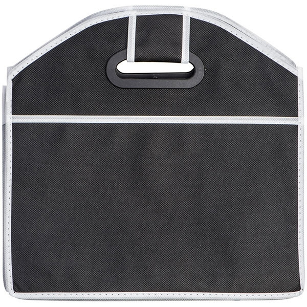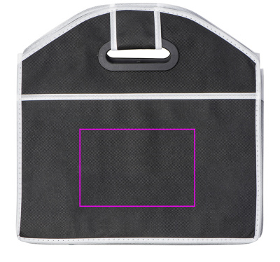 Non-Woven vikbar väska för bagageutrymmet. När den är hopfälld sparar du mycket utrymme; när den är utfälld, det perfekta utrymmet för alla dina inköp. Vi trycker din logotyp på ena sidan. Produkten har inte kardborreband på botten för bakre fäste.