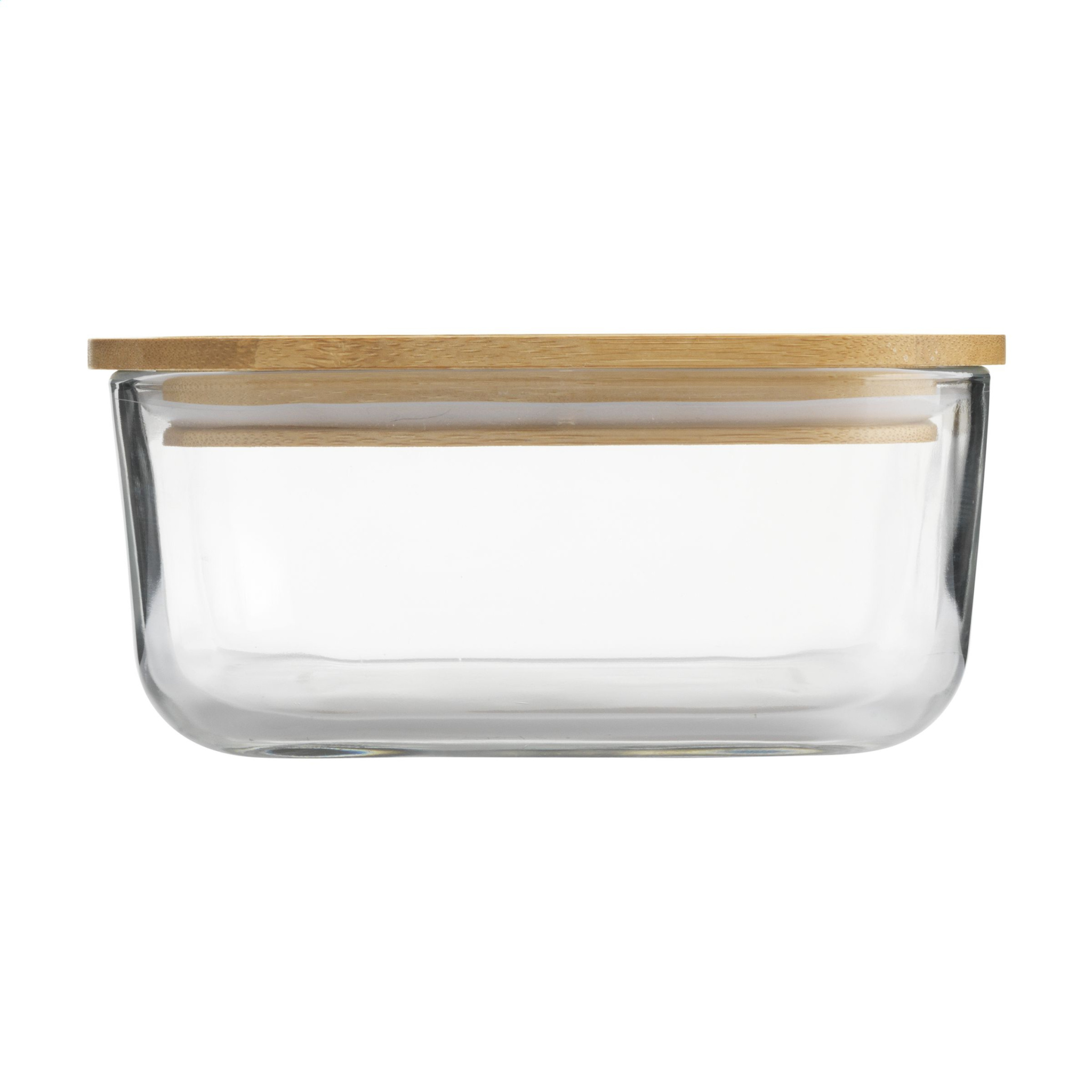Förvaringslåda tillverkad av soda lime glas. Bambulocket med silikontätningsring stängs med en tät passform. BPA-fri. Idealisk för att förvara mat på ett hygieniskt och säkert sätt. Även praktiskt att ta med sig lunch när du är på språng. Kapacitet 1 000 ml. Tillverkad i Italien.
