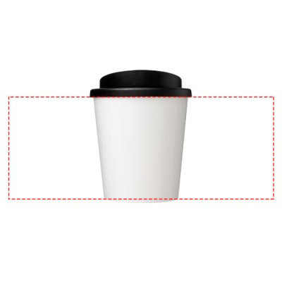 Termosmugg med dubbelvägg och skruvbart lock. Muggen har en fullfärgad omslutande design som är gjuten på produkten. Termosen är tillverkad av 95 % återvunnen plast och har en svart insida. Muggen är helt återvinningsbar och tål maskindisk och mikrovågsugn. Volymkapacitet: 250 ml. BPA-fri. Förpackad i en komposterbar påse. Tillverkad i Storbritannien.