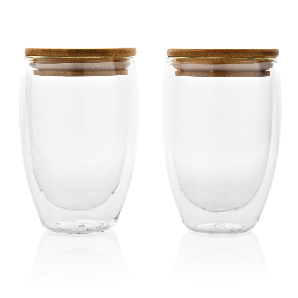 Logotrade reklamprodukter bild: Dubbelväggigt borosilikatglas med bambulock, 350ml, 2-pack