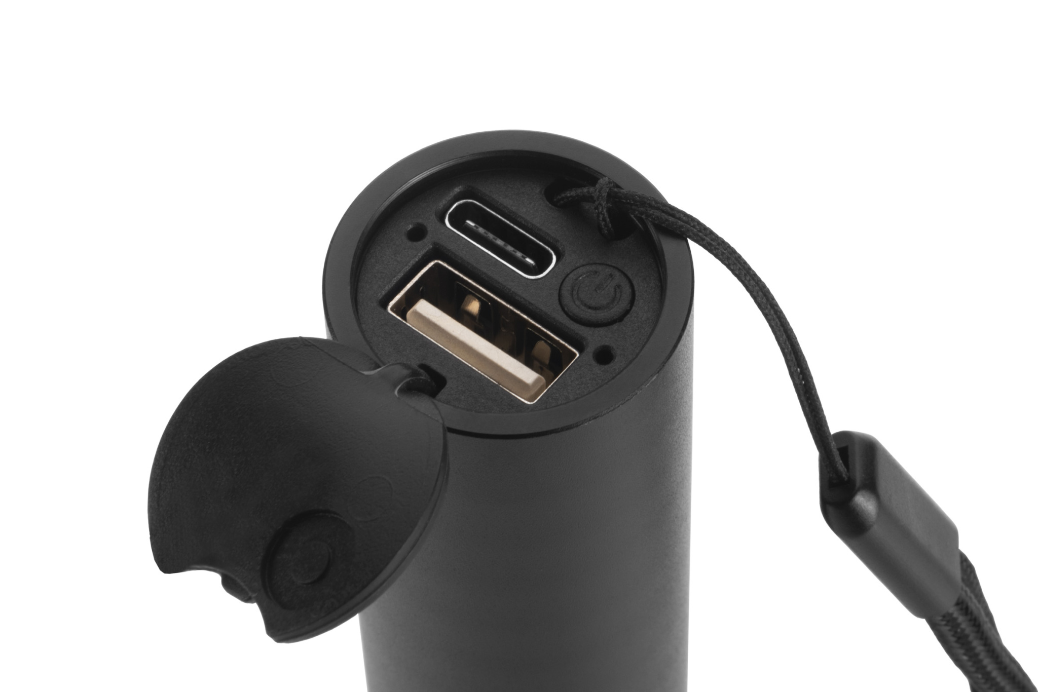 Schwarzwolf uppladdningsbar ficklampa med handledsrem. Den innehåller 5W XPG-diod. Den har 3 ljuslägen: stark, blinkande och SOS. Om du trycker på knappen längre kan du tända en dämpande belysning. Ficklampan ger möjlighet att ändra zoom och inkluderar laddningsindikatorlampa. Levereras med ett uppladdningsbart 3,7V litiumbatteri med 2000mAh kapacitet och USB-C laddningskabel. Batteriets laddningstid är 3 timmar, urladdningstid 3,5 timmar.