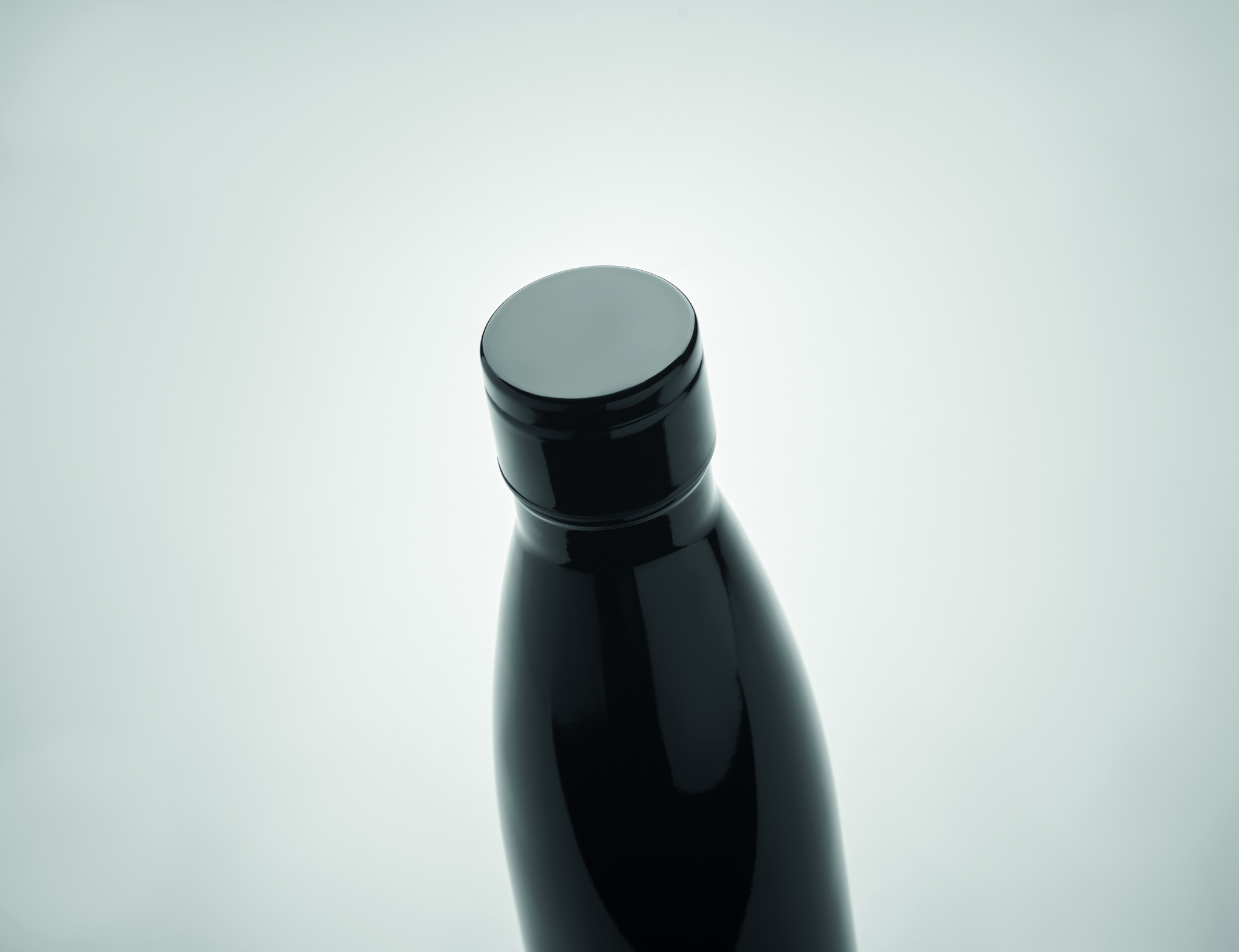 Termos flaska i rostfritt stål med dubbelvägg. Den har en LED-touch screen termometer inbyggd i locket. 1st utbytbart CR 2032-batteri, ingår. Läcksäker. Kapacitet: 500 ml.