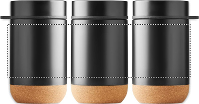 Dubbelväggig isolerad förvaringsburk i rostfritt stål med skruvlock och korkbottendetalj. Inklusive sked. Kapacitet: 400 ml.