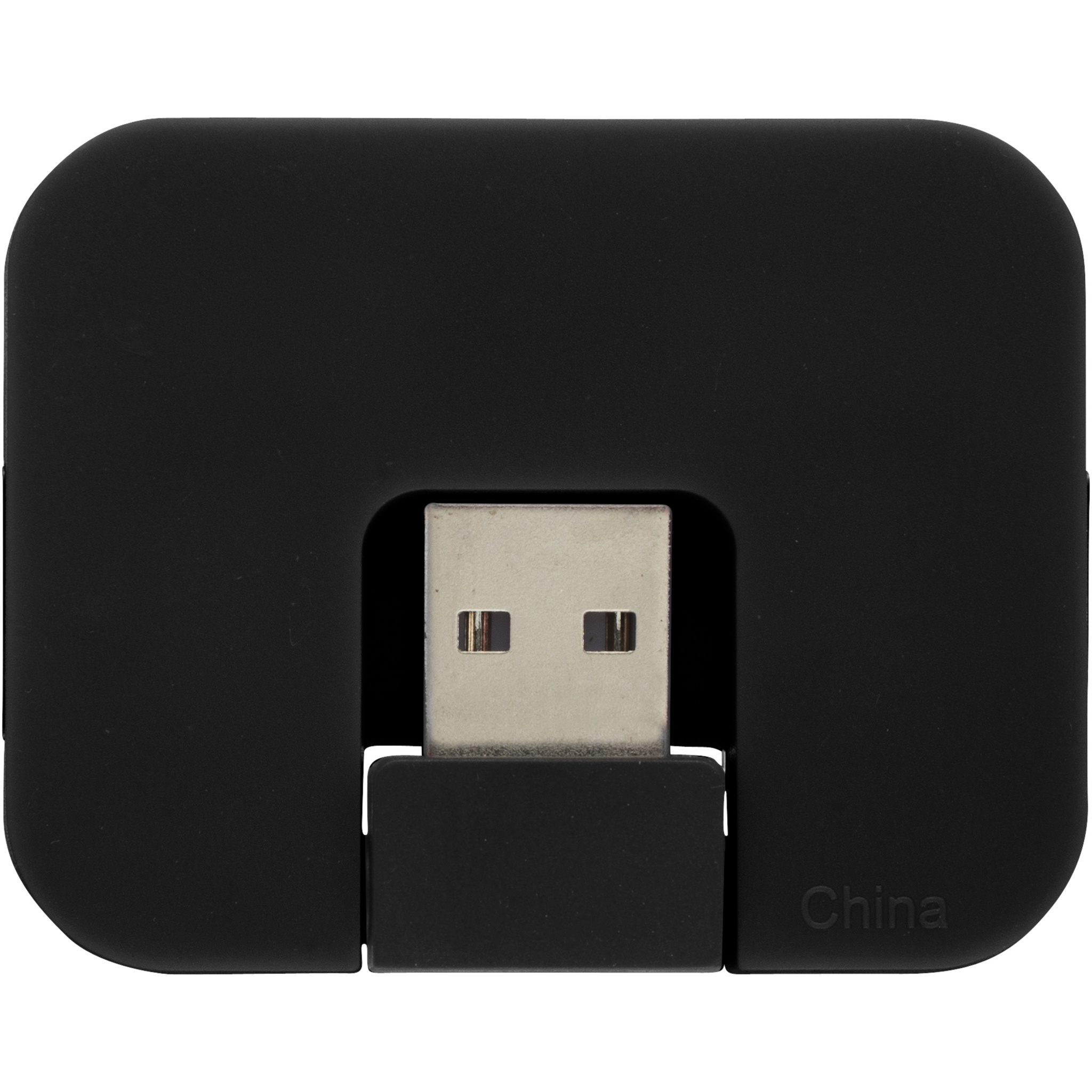 4-portars rektangulär USB-hubb med hopfällbar ingångsport.