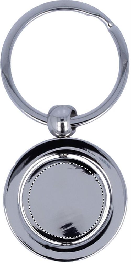 Nyckelring av metall med världen dekorerad på insidan. Styckepackad presentförpackning.