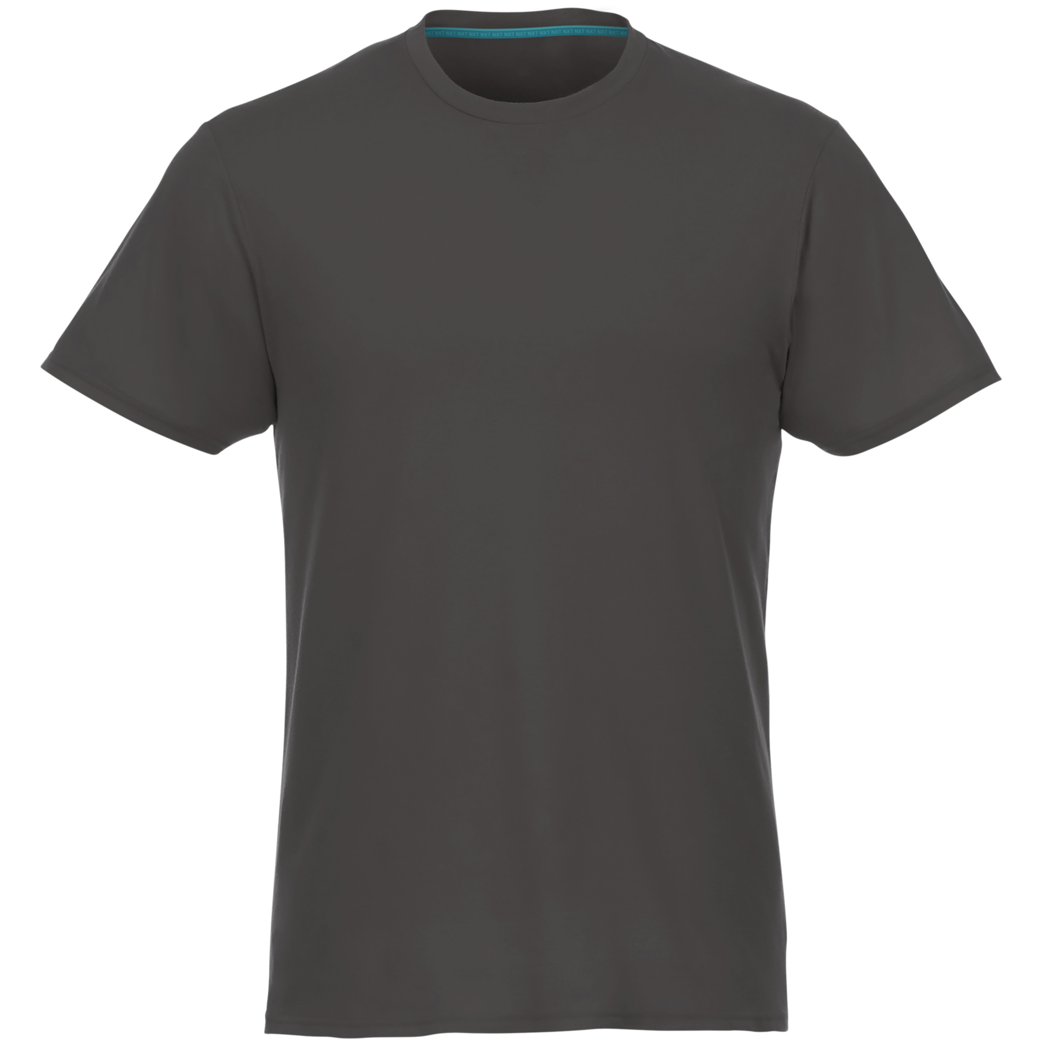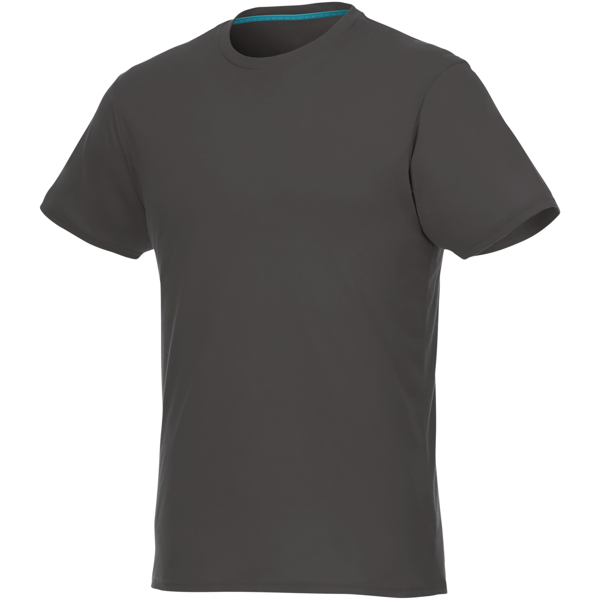 Jade kortärmad T-shirt för män med återvunnet material. Hållbara PR-plagg. Crewneck. Sidsömmar. Band mellan axlarna. Dubbelsömsdetaljer. Enkel jersey med 100 % återvunnen polyester. 160 g/m².