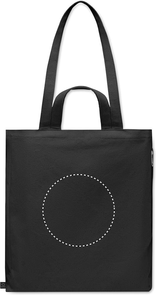 Tygkasse eller strandväska av återvunnen polycotton (70 % återvunnen bomull, 30 % återvunnen polyester) med korta handtag. Den har en sidoficka med dragkedja.380 gr/m².