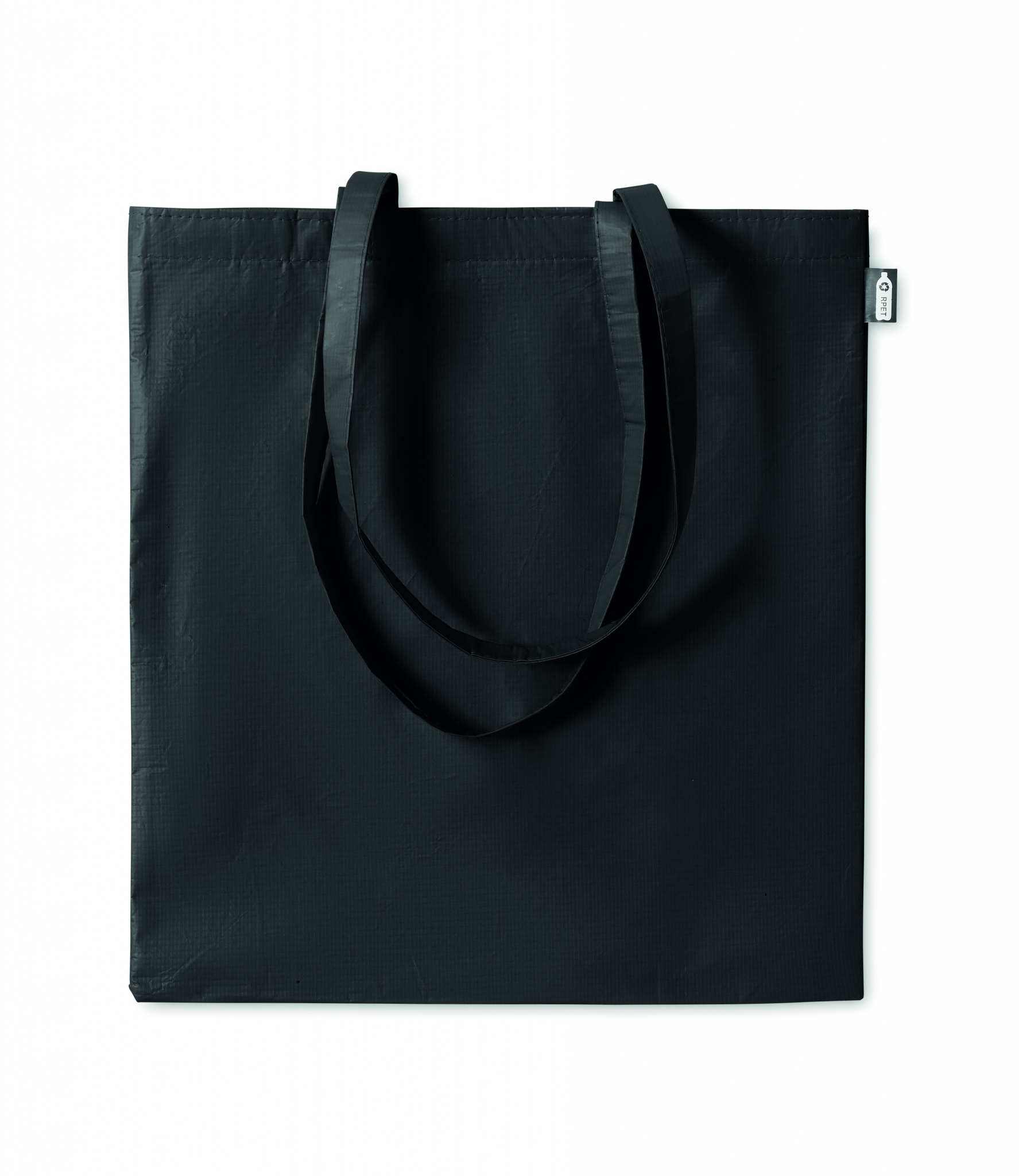 Laminerad kasse i RPET non woven med långa handtag. 100 gr/m².