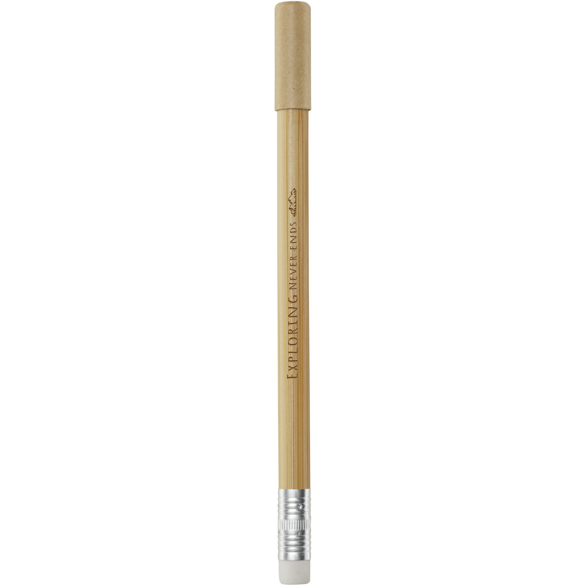 Den bläckfria pennan Krajono i bambu kräver inte bläckpatroner eller påfyllning. Pennans svarta grafitspets är utformad för att lämna synliga spår när den kommer i kontakt med skrivytan. Att välja en penna tillverkad av bambu främjar mer hållbara val och uppmuntrar användning av förnybara material. Pennan har ett sudd på toppen. Skrivlängd: 1500 meter. Spetsstorlek: 0,5 mm.