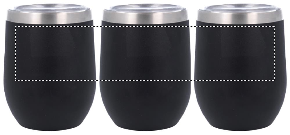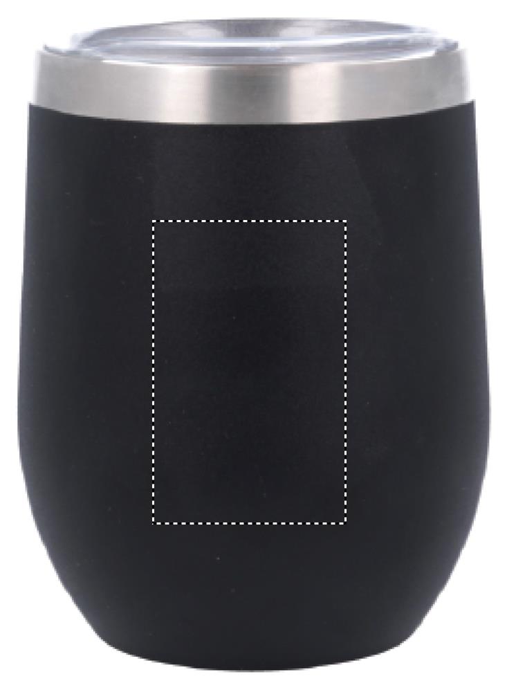 Termo mugg eller kopp med lock. Rymmer 300 ml. Dubbla väggar i metall som isolerar för både kyla och värme.