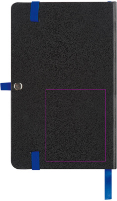 Anteckningsbok med svart PU-omslag och 160 raderade sidor. Elegant look genom färgglada accenter. Vi trycker din logotyp på omslaget.