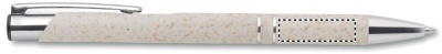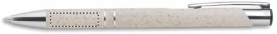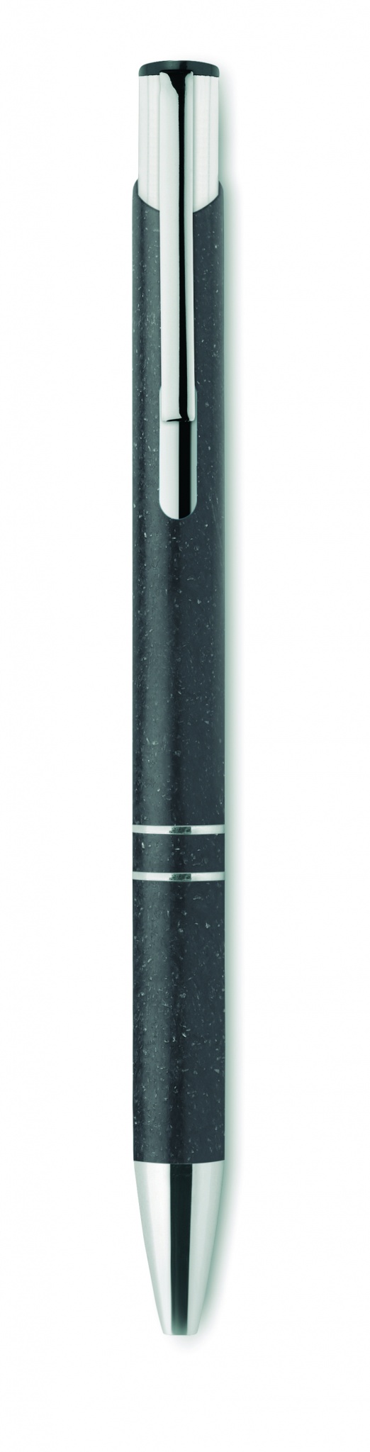 Kulspetspenna tillverkad av 50% vetehalm och 50% ABS plast med silverfärgade detaljer. Inblandningen av vetehalm i plastmaterialet reducerar plaståtgången till hälften. Blått bläck.