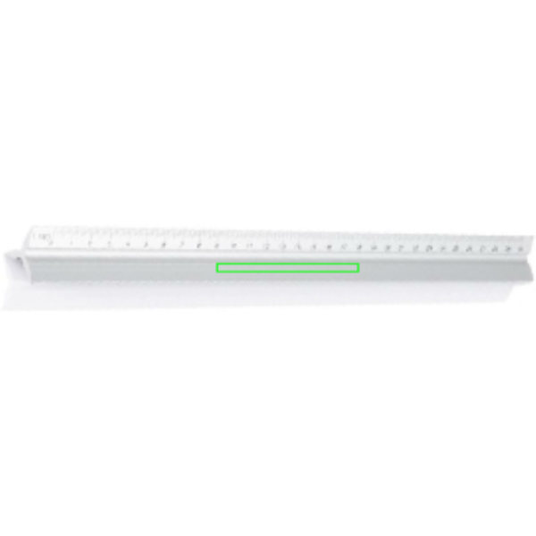 Linjal i aluminium med 5 olika skalor (1:20;1:25;1:50;1:75;1:100). En yta avsedd för tryck/gravyr.