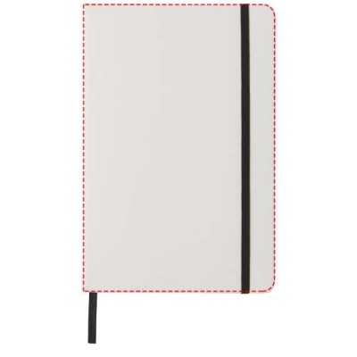 Spectrum vit anteckningsbok A5 med färgad kontrast. Vit A5 anteckningsbok med kontrastfärg på resårband och avdelare. Inklusive 80 ark linjerat papper (60 g/m²). Kan märkas med digitaltryck på omslaget. PVC täckt kartong.