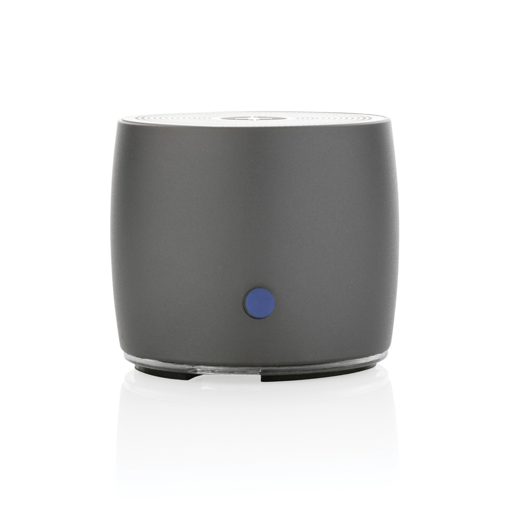 Liten men kraftfull trådlös högtalare på 3W tillverkad av RCS-certifierad (Recycled Claim Standard) återvunnen aluminium och återvunnen ABS. Totalt återvunnet innehåll: 28% baserat på total produktvikt. RCS-certifieringen garanterar en helt certifierad leveranskedja för de återvunna materialen. Aluminium förlorar inte sina egenskaper i återvinningsprocessen och kan återvinnas i all oändlighet. Type C laddningskabel av RCS-certifierad återvunnen TPE medföljer. Levereras i FSC®-mixförpackning. Batteriet på 500mah ger en speltid på upp till 4 timmar och kan laddas upp helt på 2 timmar. Med BT 5.0 för smidig anslutning med en räckvidd på upp till 10 meter. Produkten och tillbehören är fria från PVC.