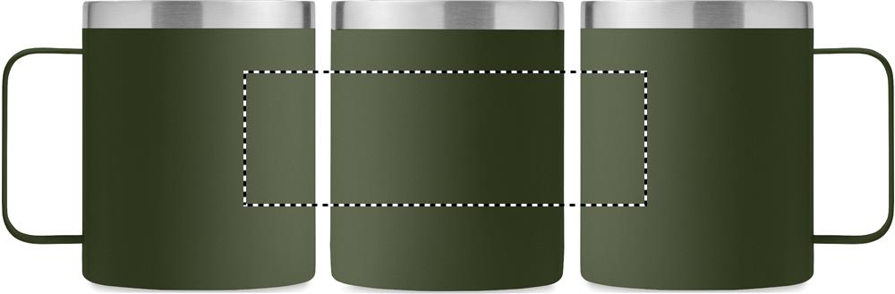 Mugg med dubbelvägg i återvunnet rostfritt stål (90 % återvunnet rostfritt och stål 10 % rostfritt stål) med glidande lock för siphål. Volym: 300 ml.